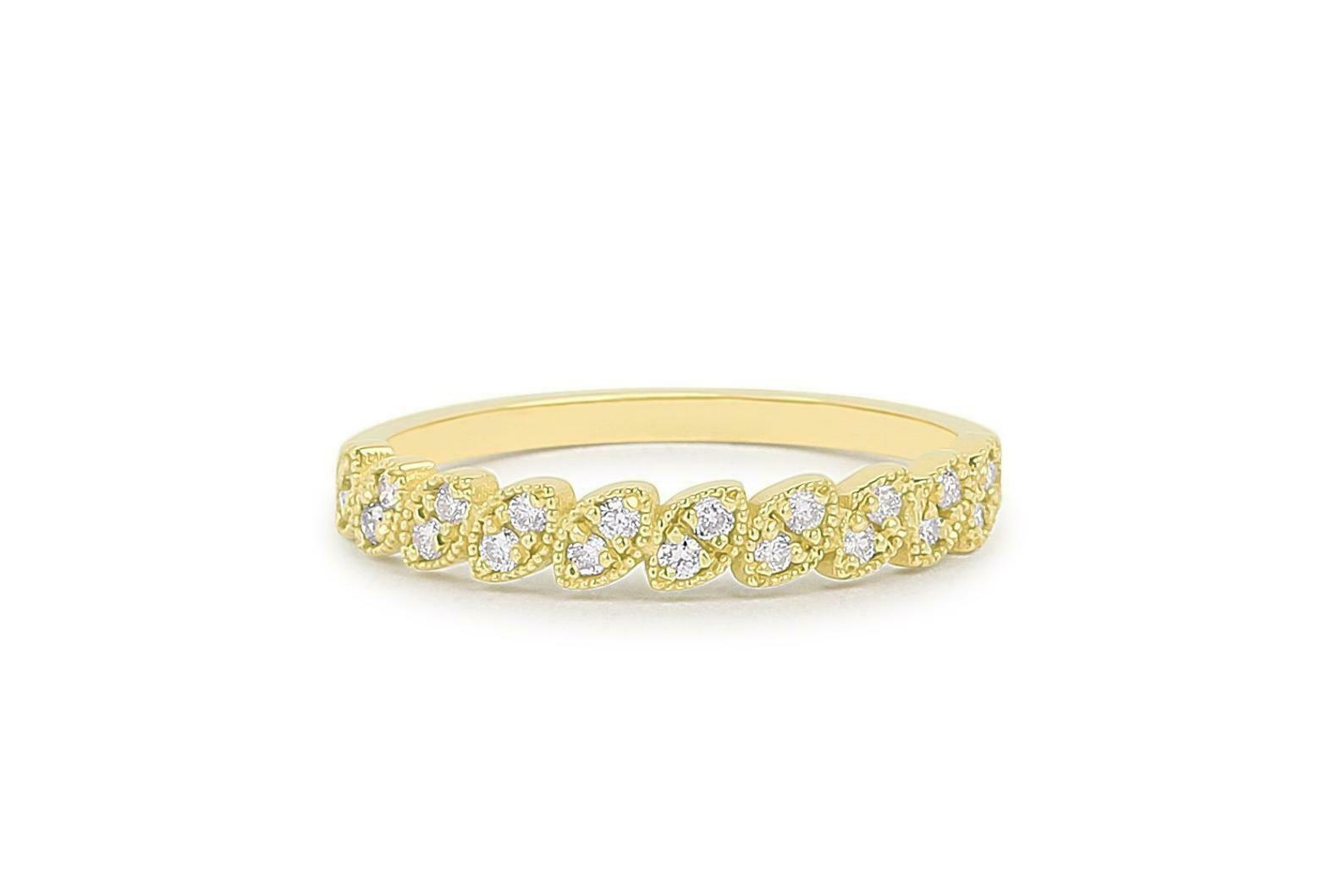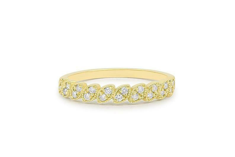 Milgrain Half Eternity Wedding Band 1ct Round Cut Diamond 14k Yellow Gold Finish