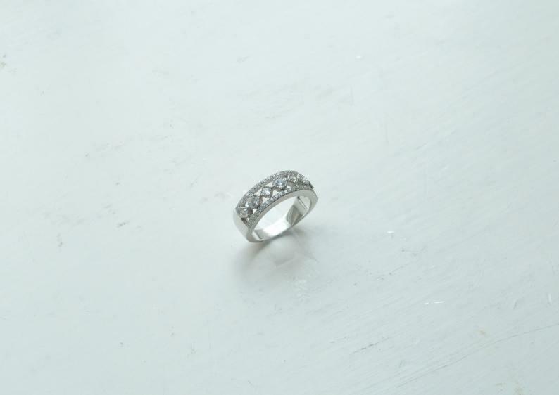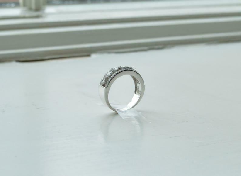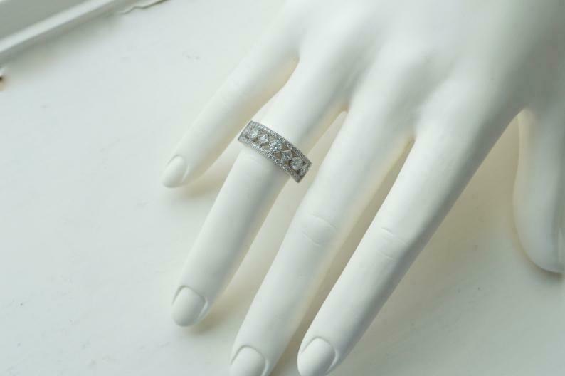 Milgrain Half Eternity Wedding Band 2ct Round Cut Diamond 14k White Gold Finish