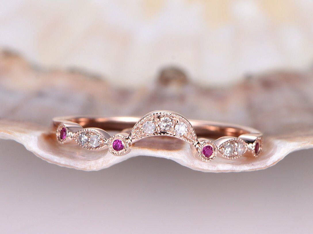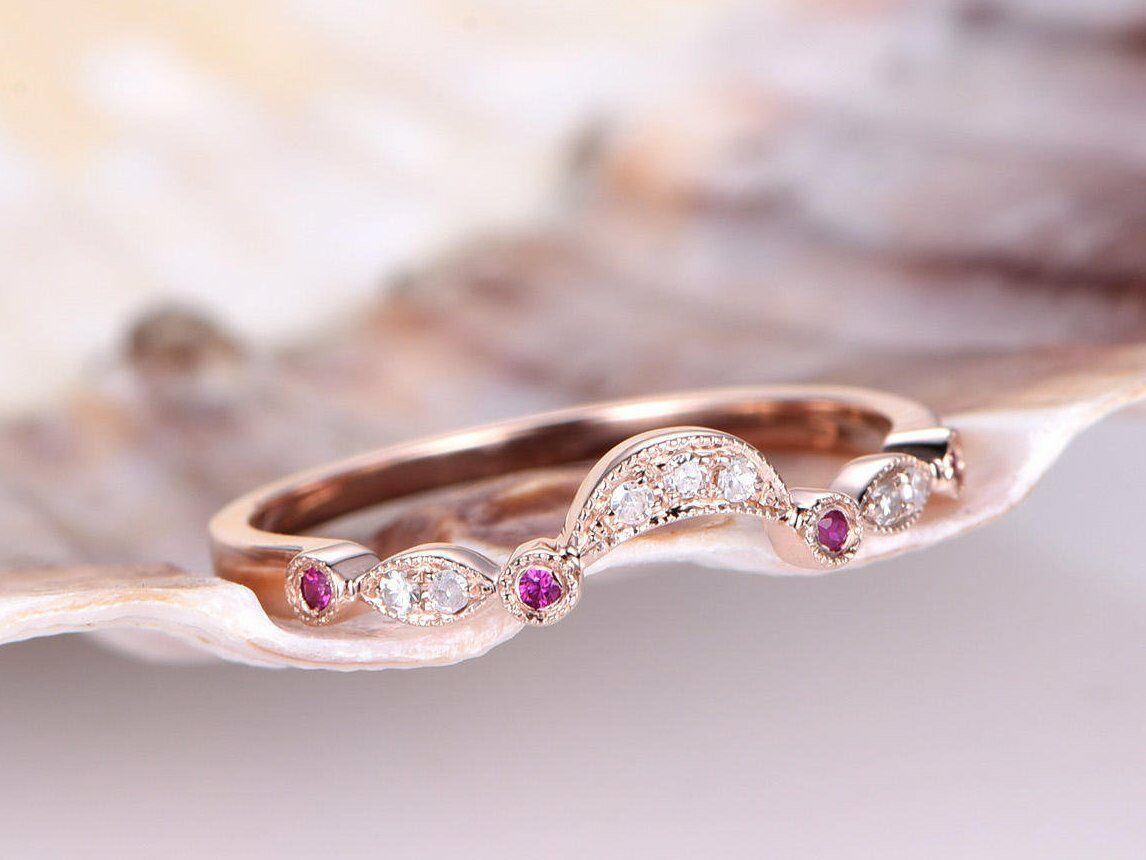 Milgrain Half Eternity Wedding Ring Band 1ct Round Diamond 14k Rose Gold Finish