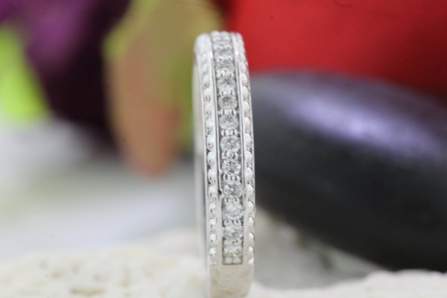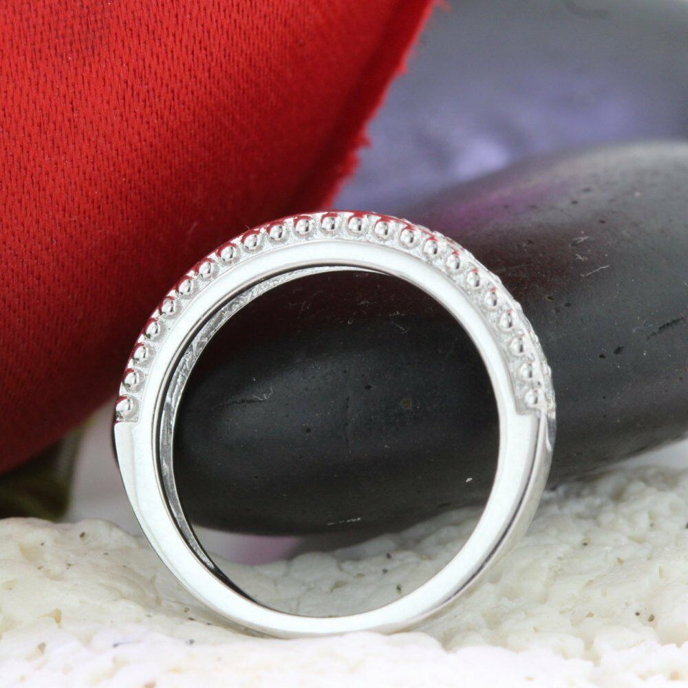 Milgrain Half Eternity Wedding Ring Band 1ct Round Diamond 14k White Gold Finish