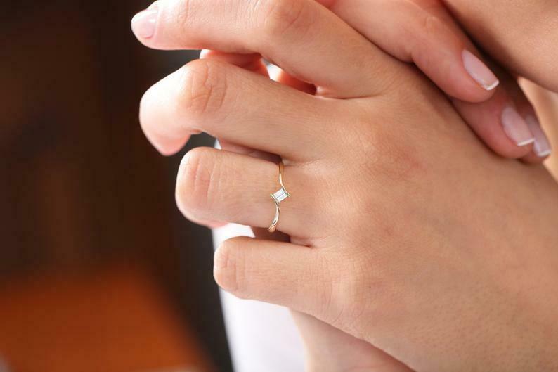 Minimalist Engagement Ring 0.35ct Baguette Cut Diamond 14k Yellow Gold Finish