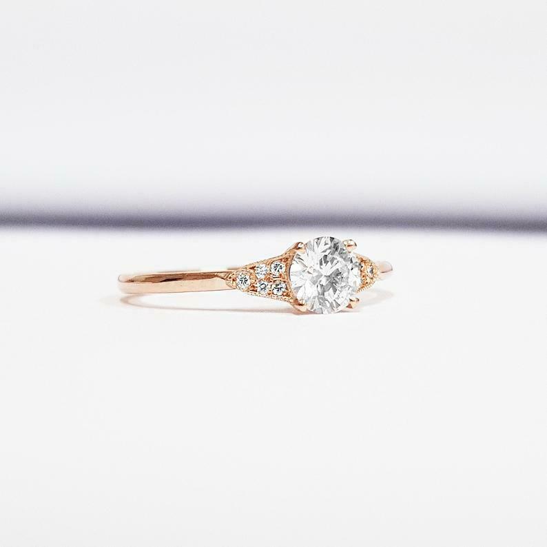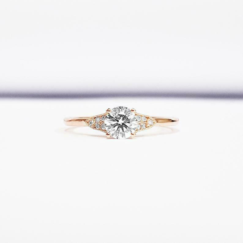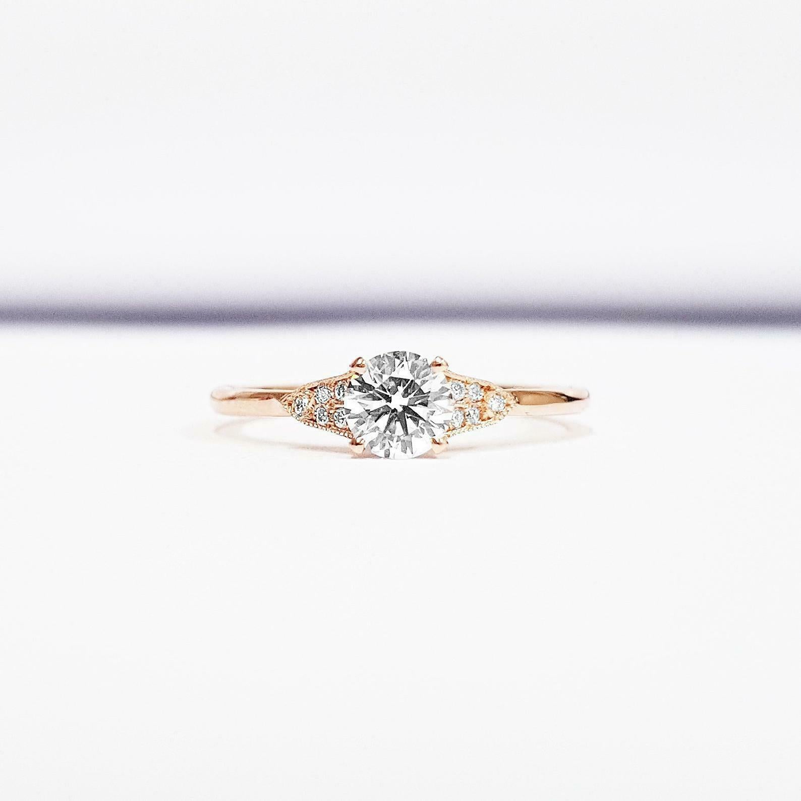Minimalist Petite Engagement Ring 0.55ct Round Cut Diamond 14k Rose Gold Finish