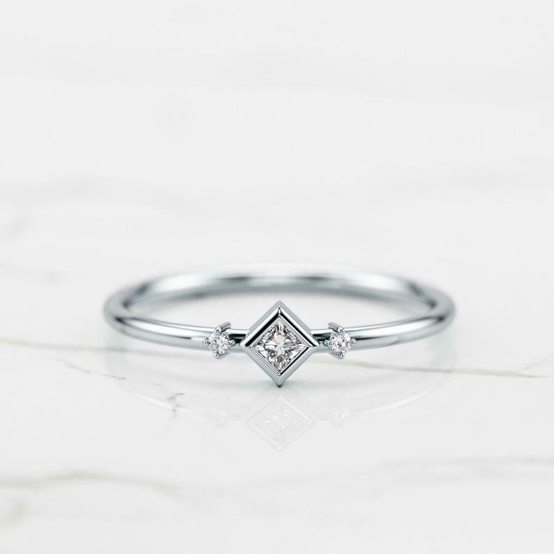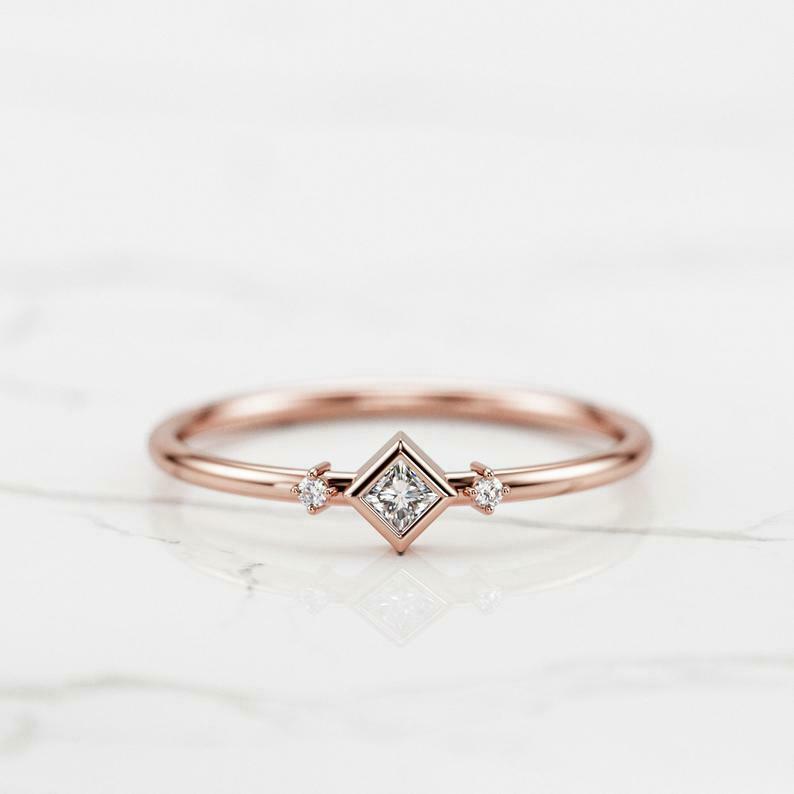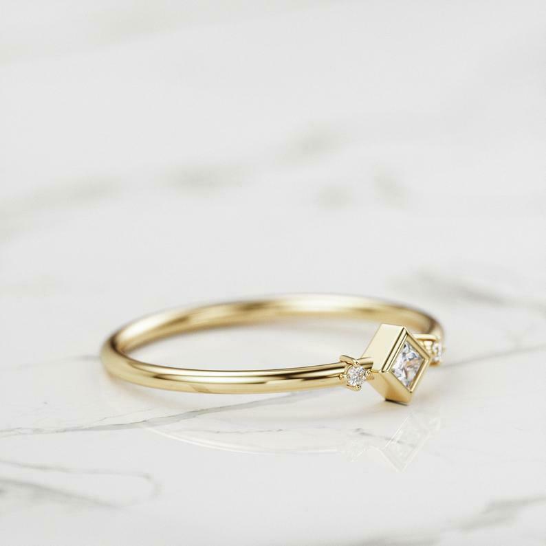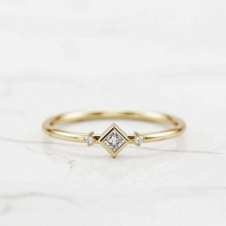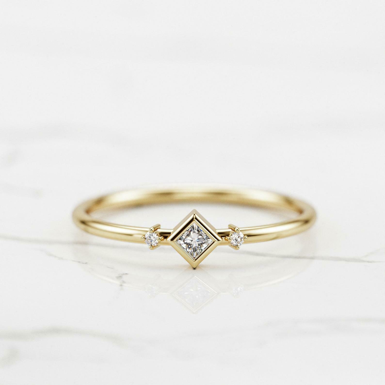 Minimalist Trilogy Engagement Ring 0.4ct Princess Diamond 14k Yellow Gold Finish