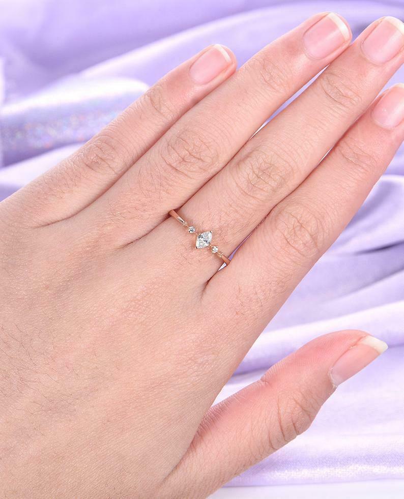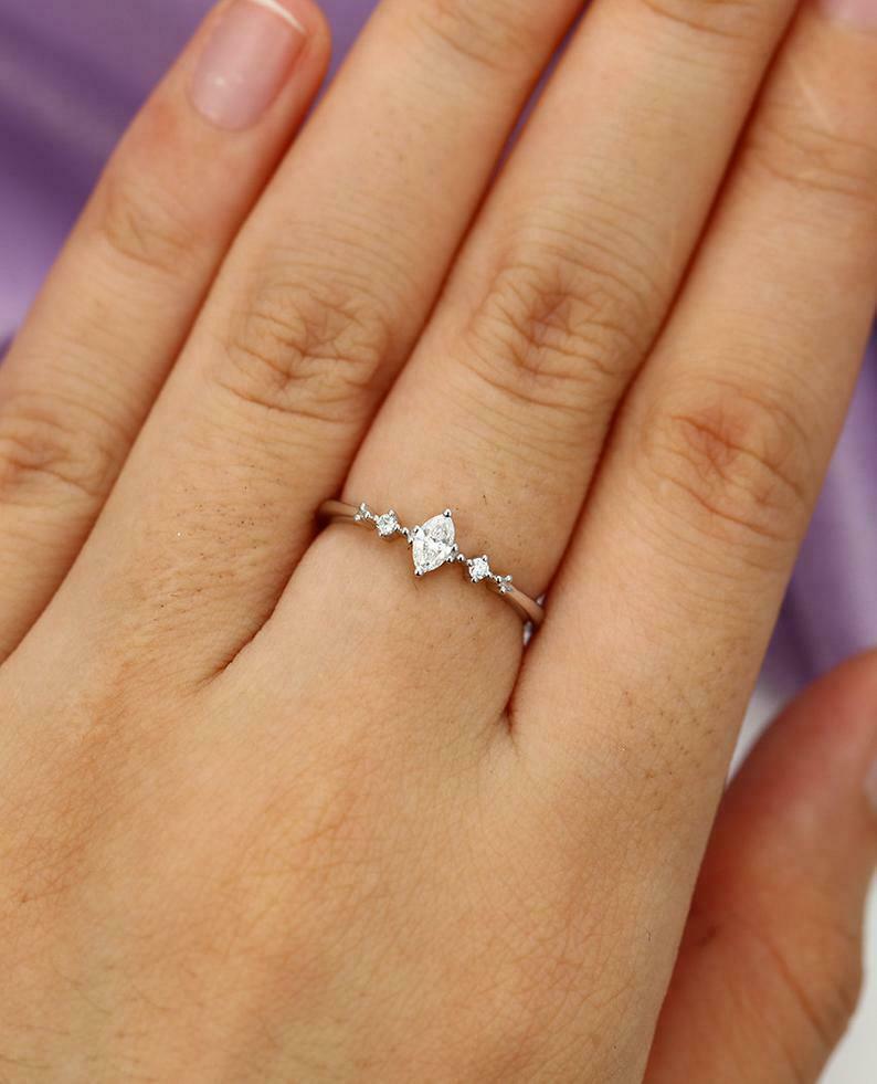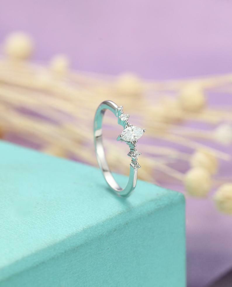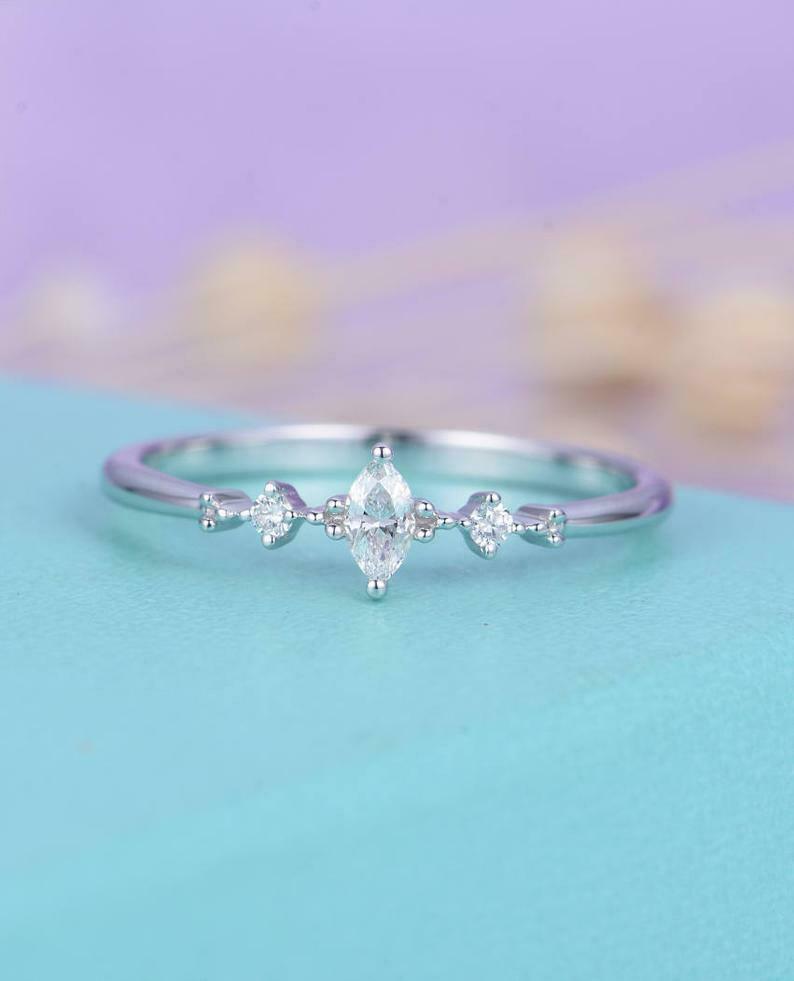 Minimalist Trilogy Engagement Ring 0.5ct Marquise Diamond 14k Yellow Gold Finish