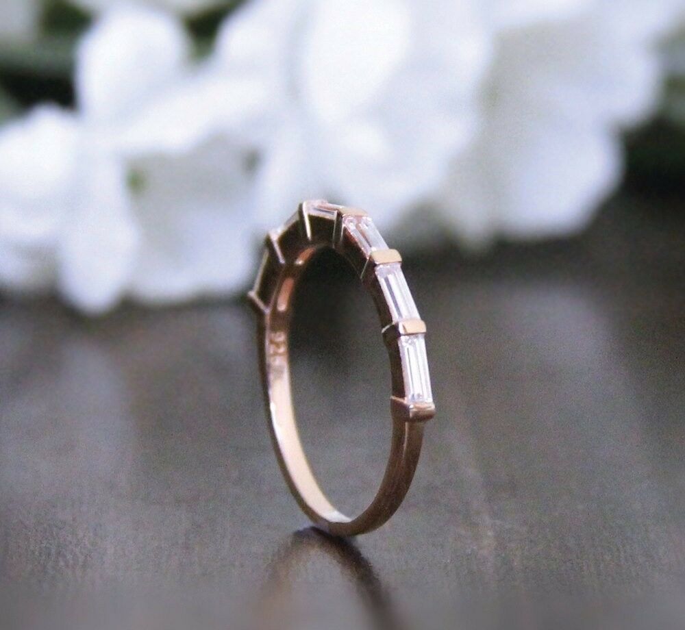 Minimalist Wedding Ring Band 1.2ct Baguette Cut Diamond 14k Rose Gold Finish