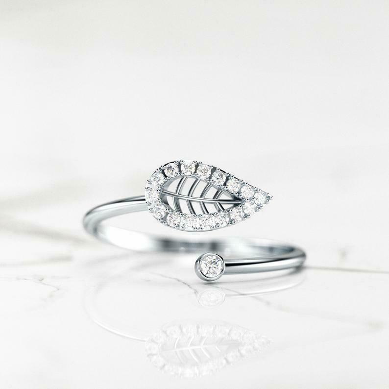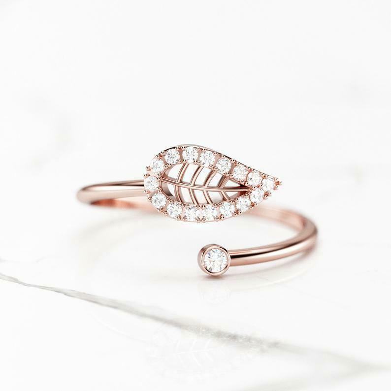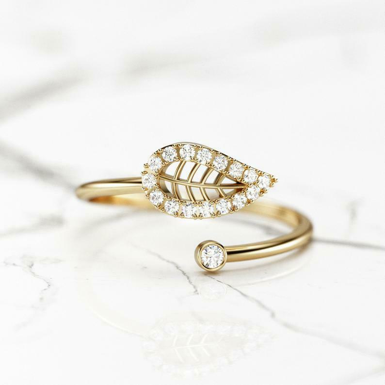 Open Bypass Leaf Design Engagement Ring 1ct Round Cut Diamond 14k Yellow Gold Finish