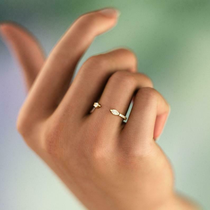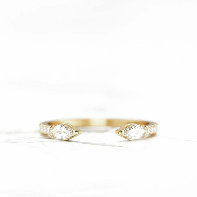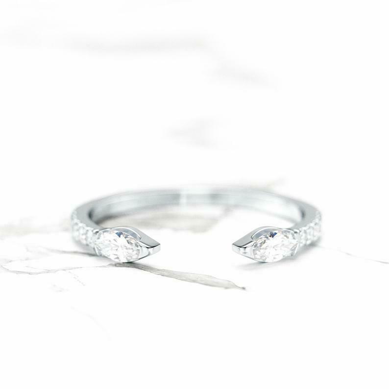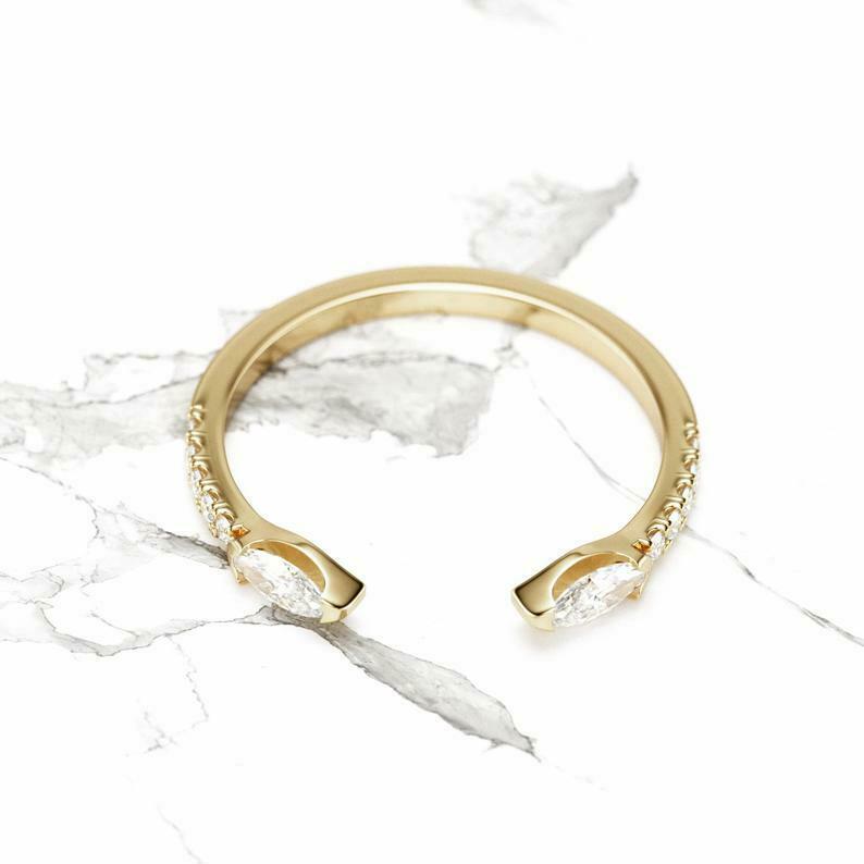 Open Cuff Snake Wedding Band 0.7ct Marquise Cut Diamond 14k Yellow Gold Finish