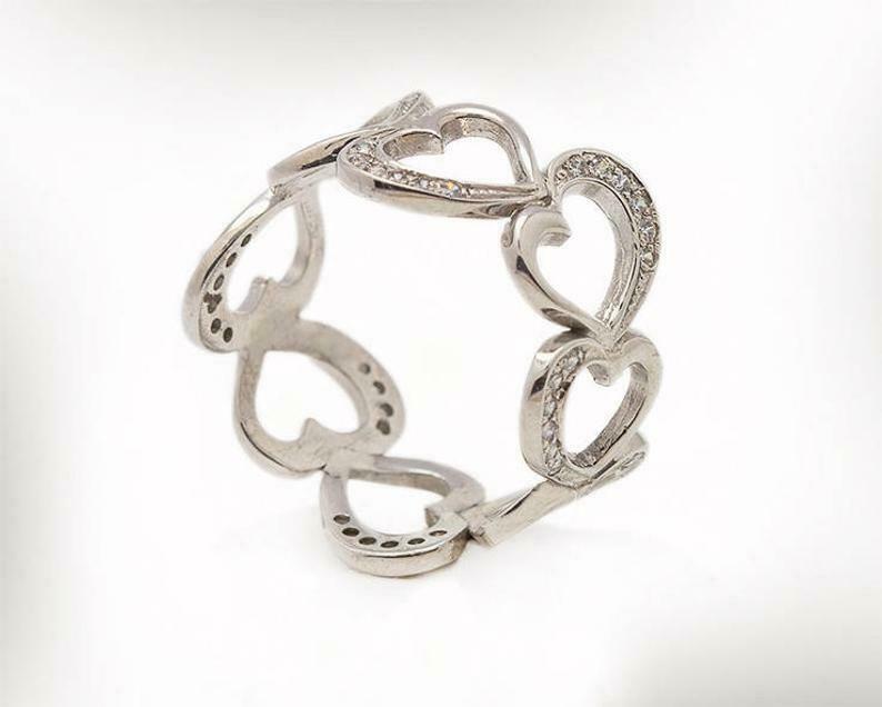 Open Heart Love Engagement Ring 1.5ct Round Cut Diamond 14k White Gold Finish