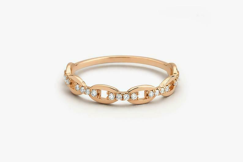 Open Link Engagement Ring 0.8ct Round Cut VVS1D Diamond 14k Yellow Gold Finish