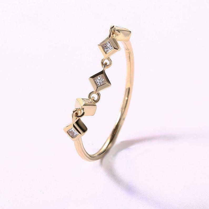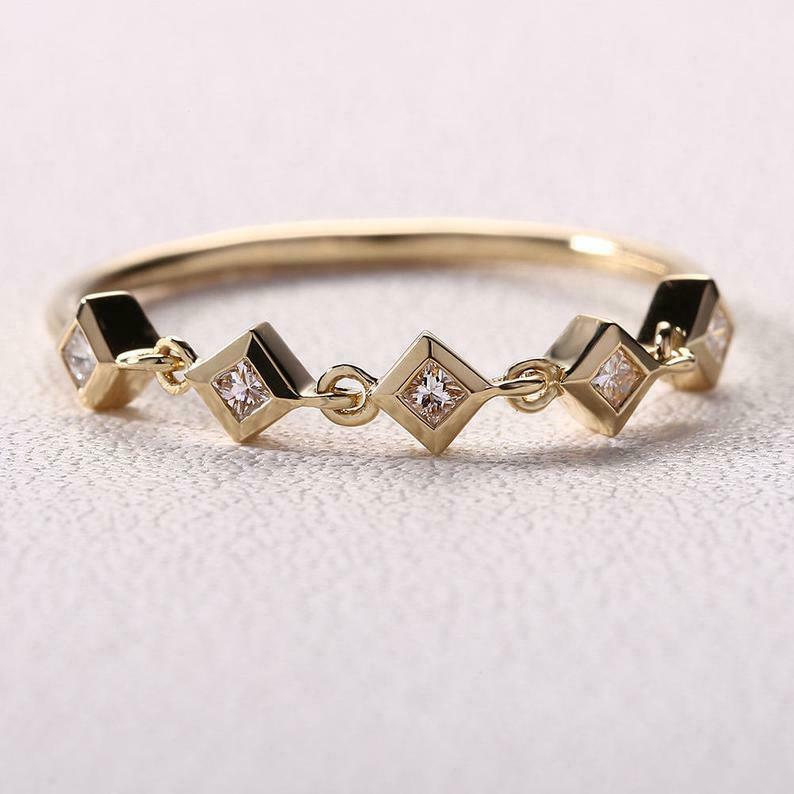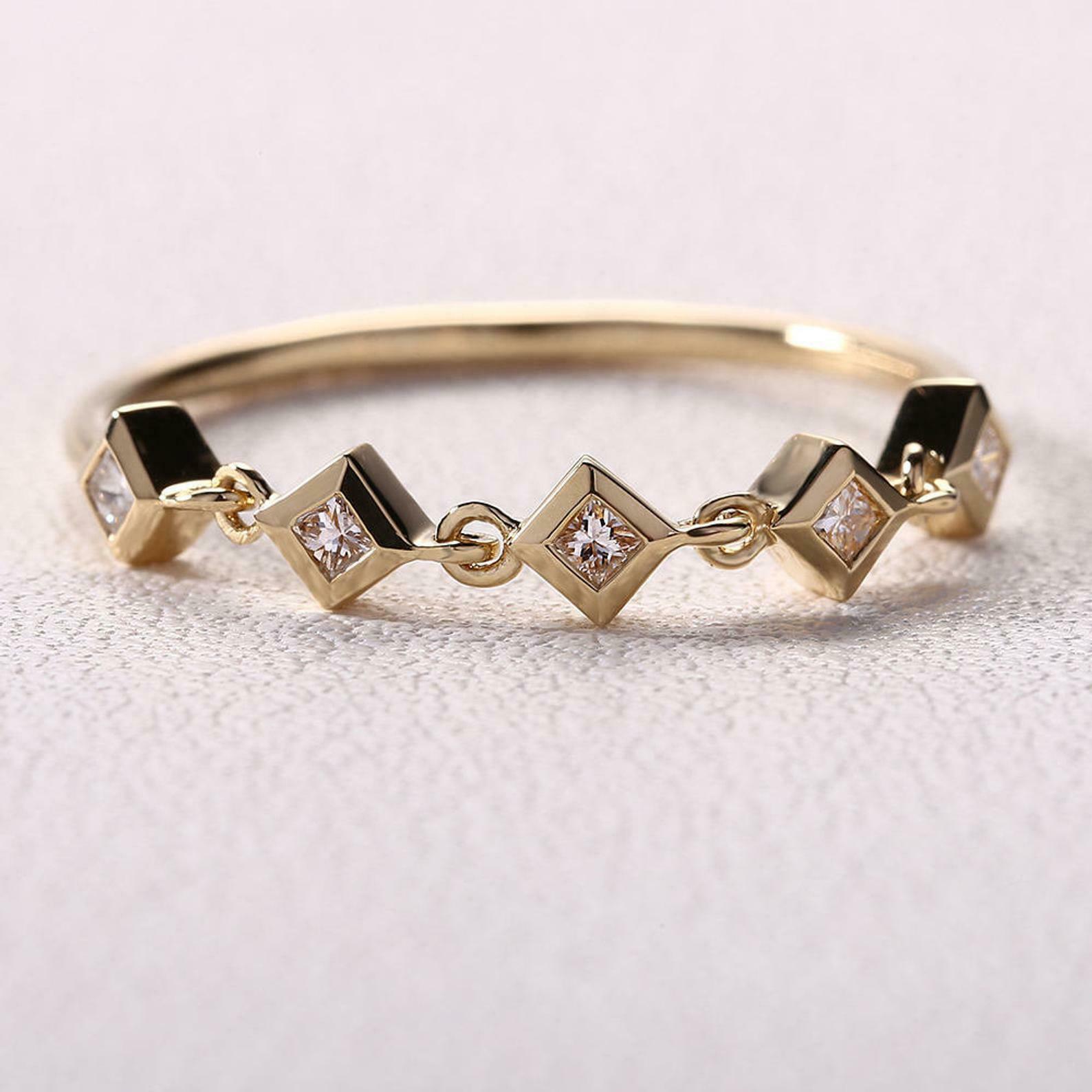 Open Link Stackable Minimalist Wedding Band 1ct Princess Cut Diamond 14k Yellow Gold Over
