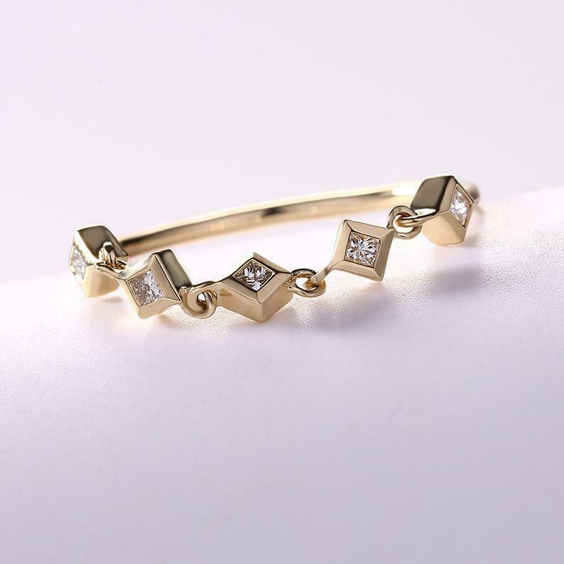 Open Link Stackable Minimalist Band 1ct Princess Cut Diamond 14k YellowGold Over
