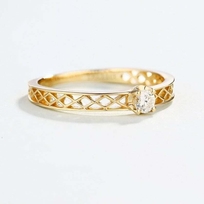 Open Mesh Shank Solitaire Ring 0.65ct Round Cut Diamond 14k Yellow Gold Finish