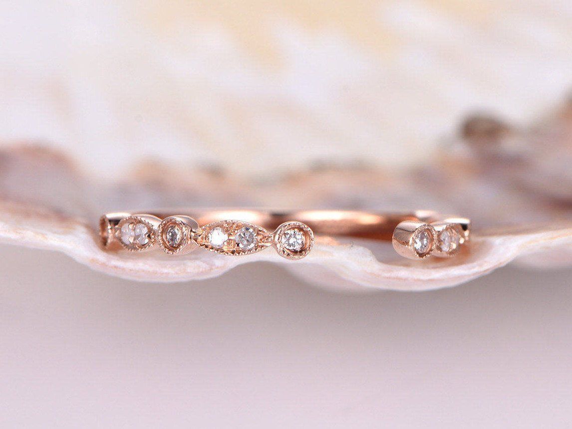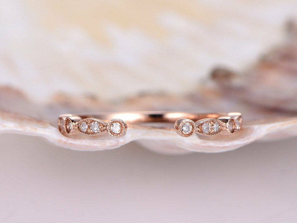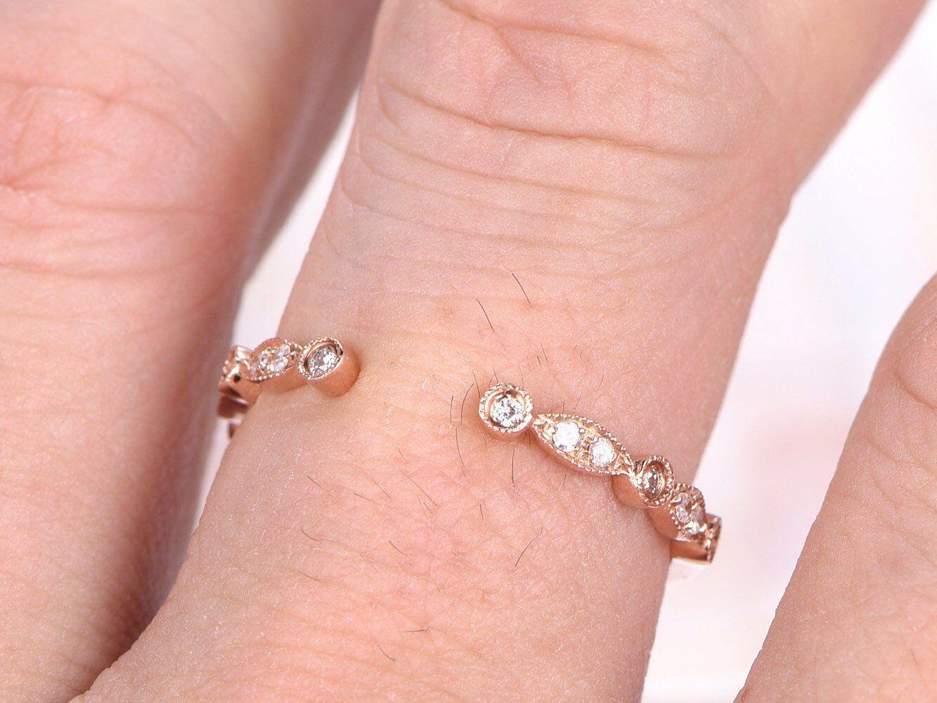 Open Milgrain Eternity Wedding Ring Band 1ct Round Diamond 14k Rose Gold Finish