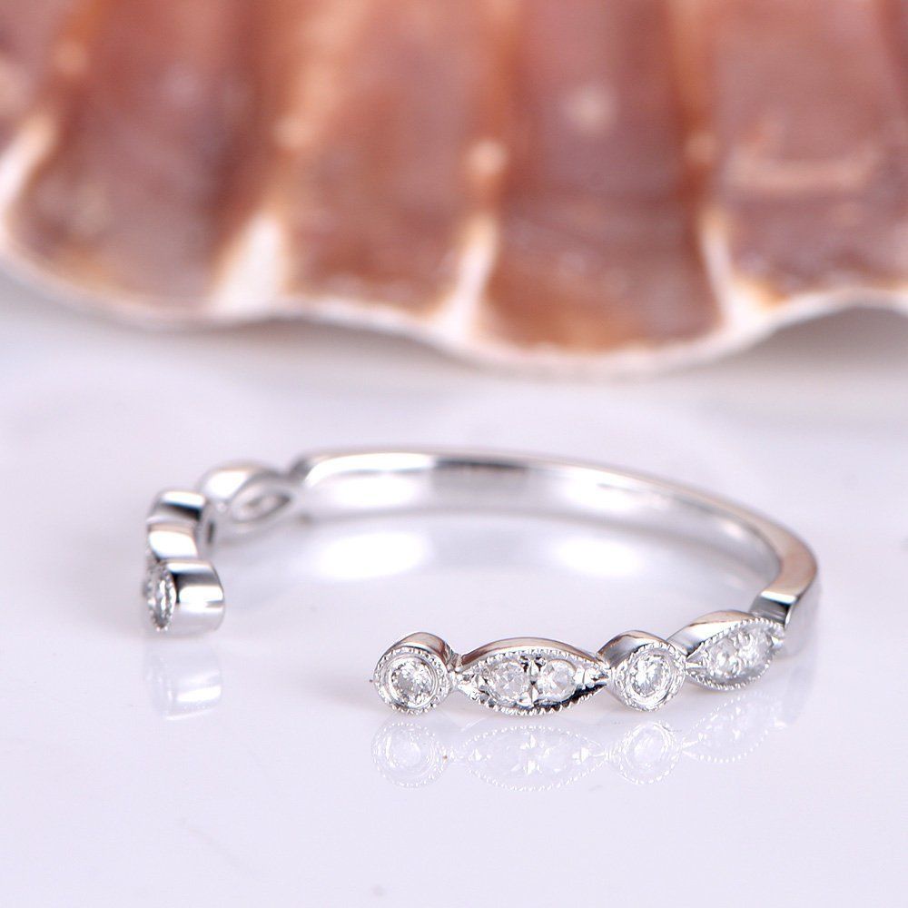 Open Milgrain Eternity Wedding Ring Band 1ct Round Diamond 14k White Gold Finish
