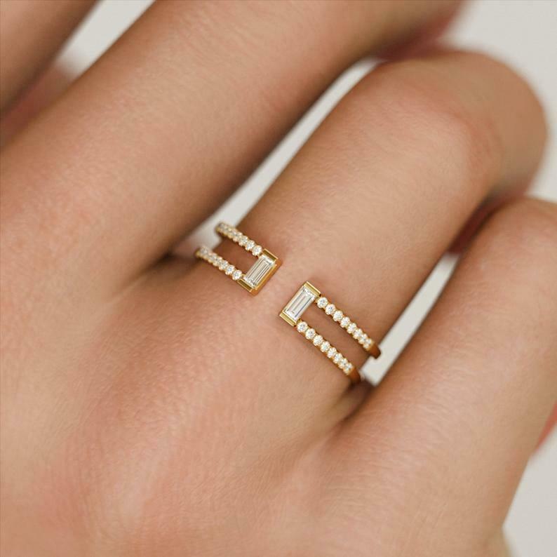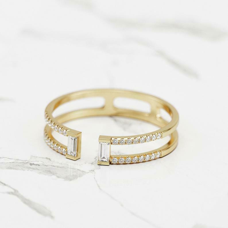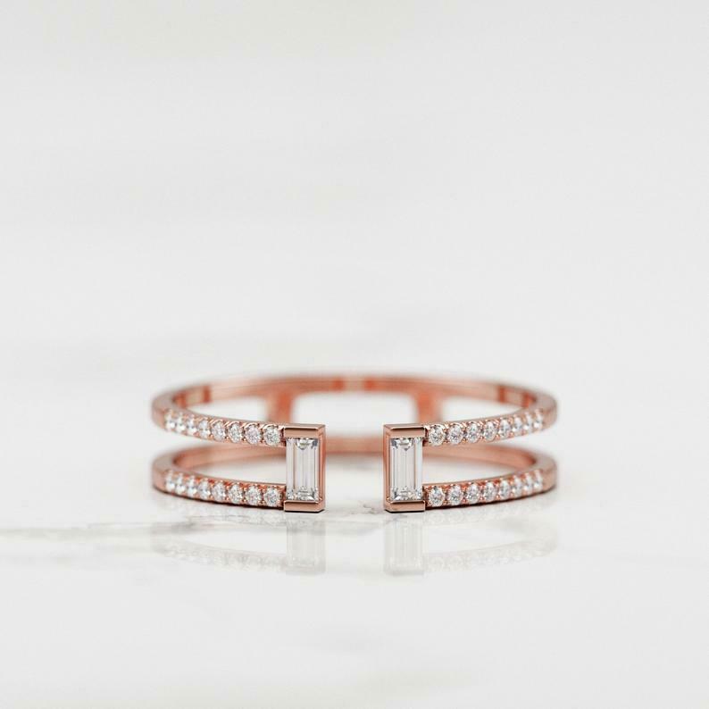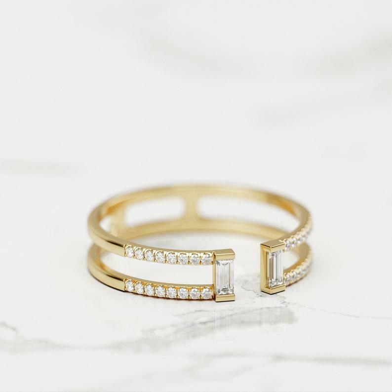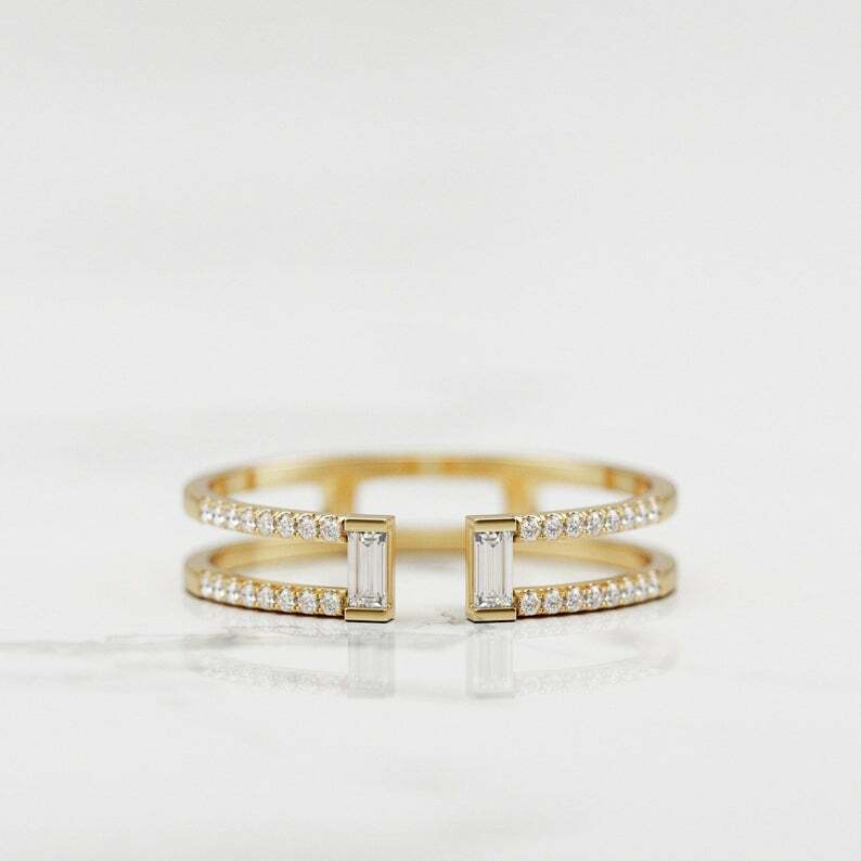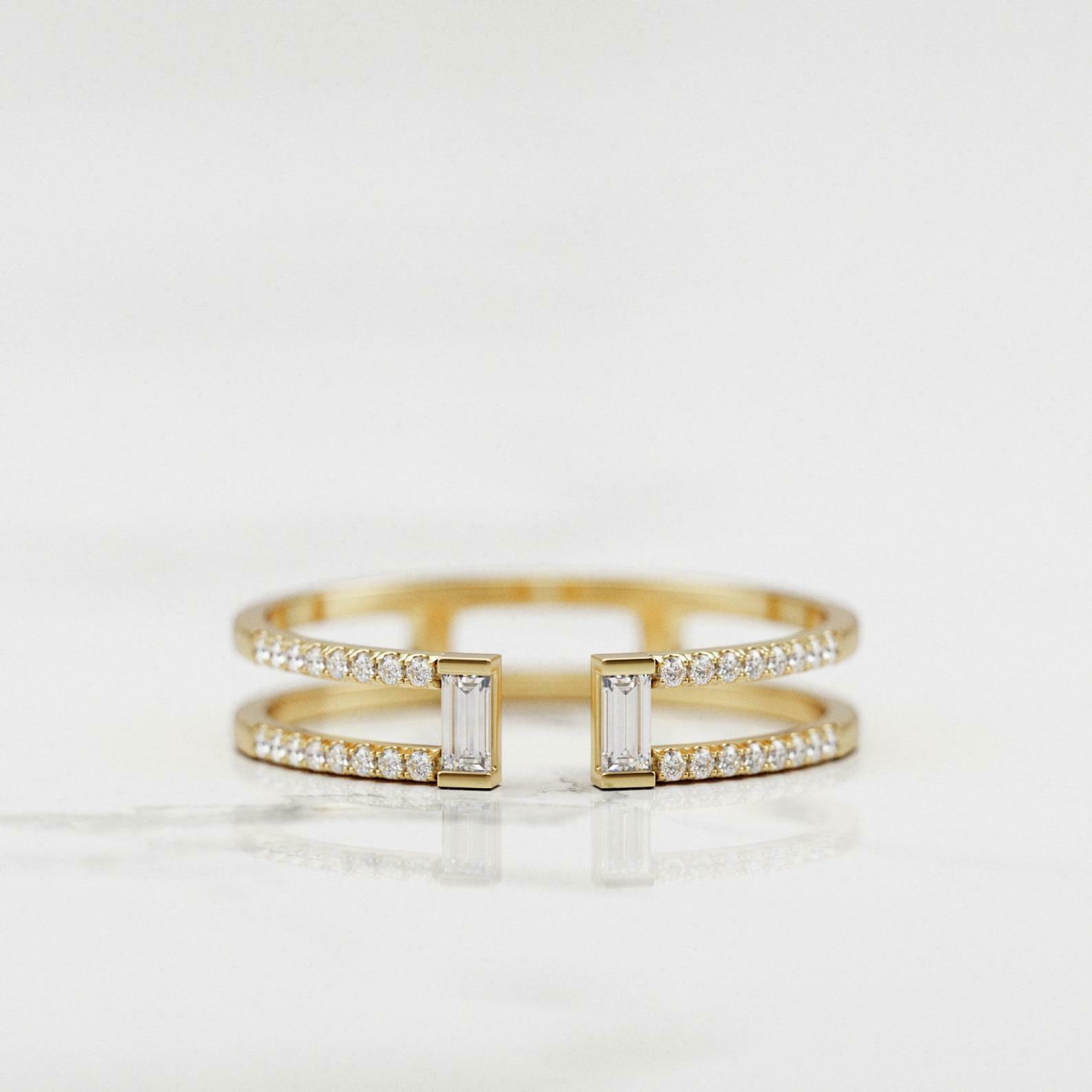 Open Stackable Dual Split Band Ring 1.3ct Baguette Cut Diamond 14k Yellow Gold Finish