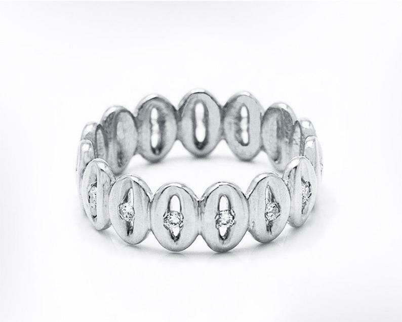 Oval Coffee Bean Design Engagement Ring 1ct Round Cut Diamond 14k White Gold Finish