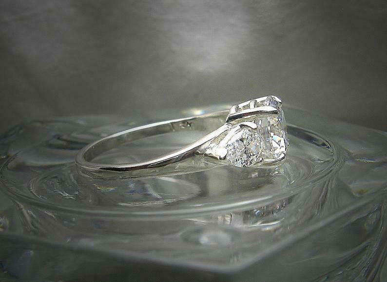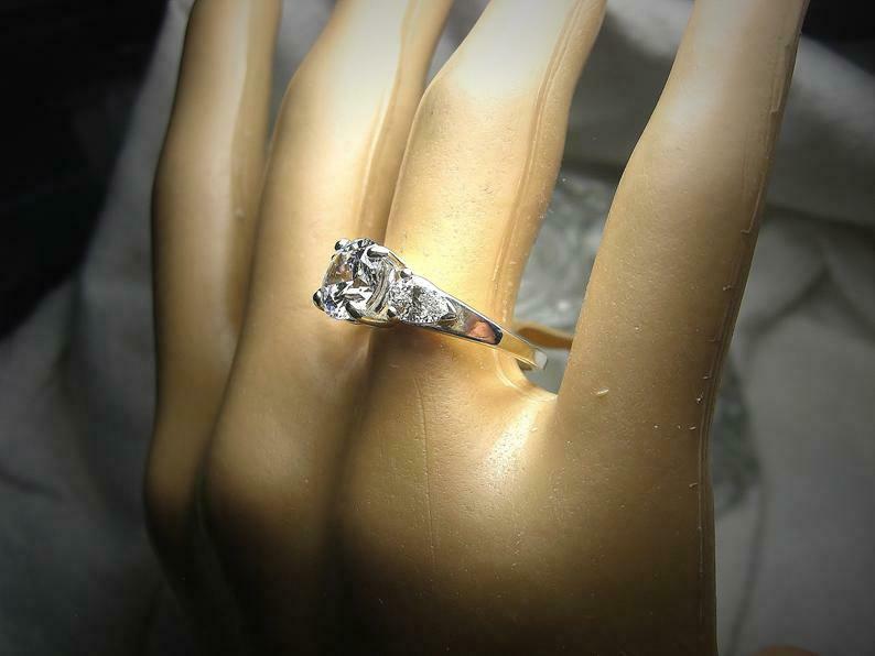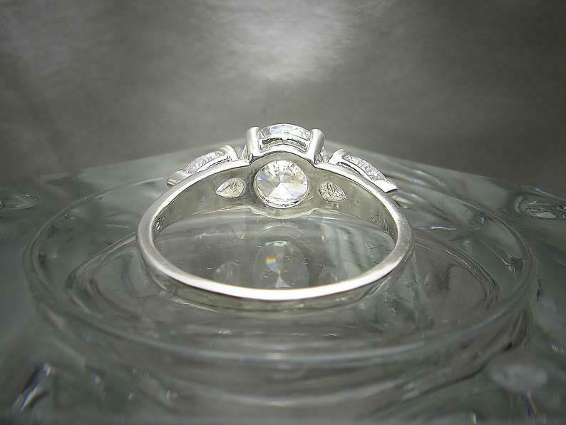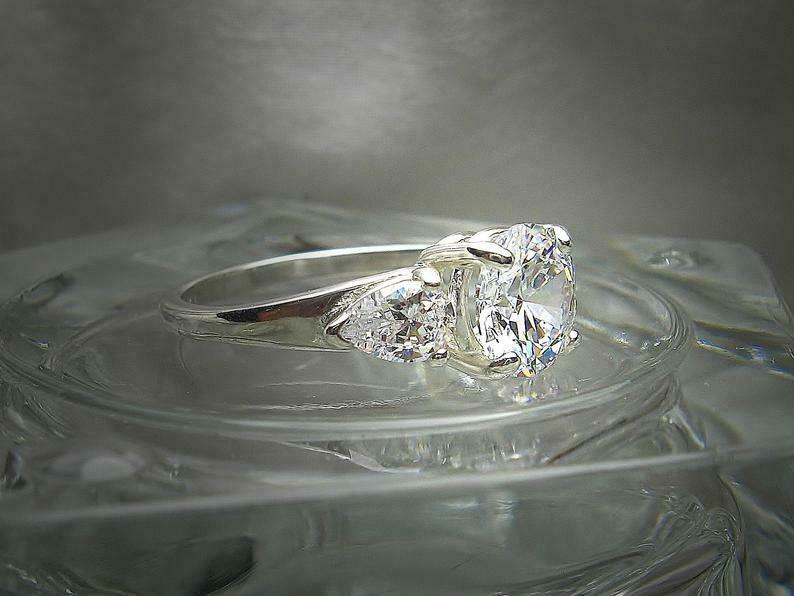 Pear Accent Trilogy Engagement Ring 2.5ct Round Cut Diamond 14k WhiteGold Finish