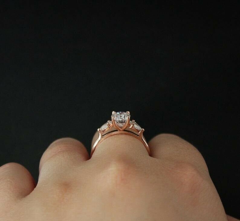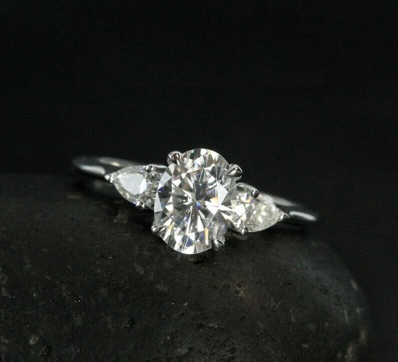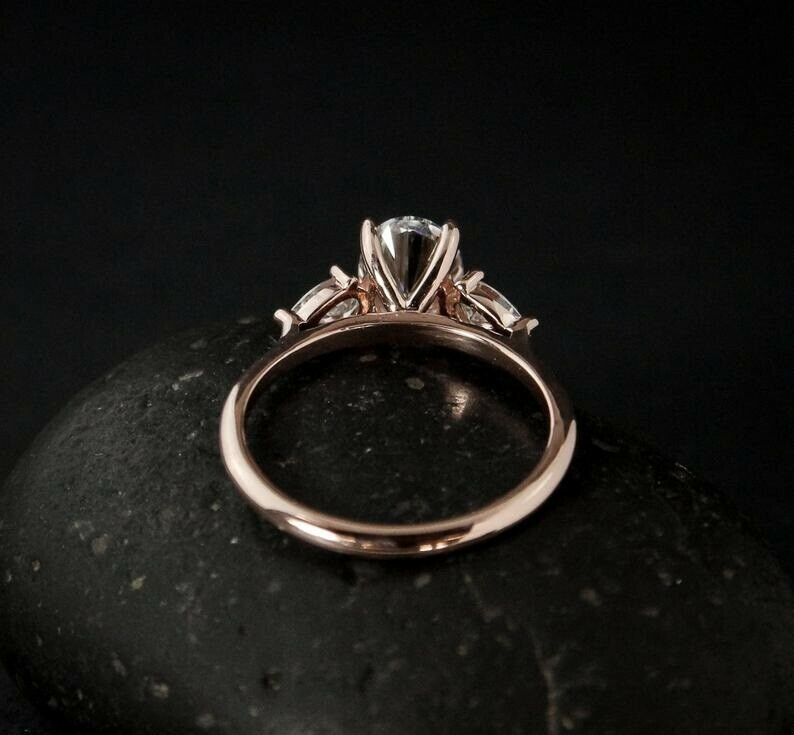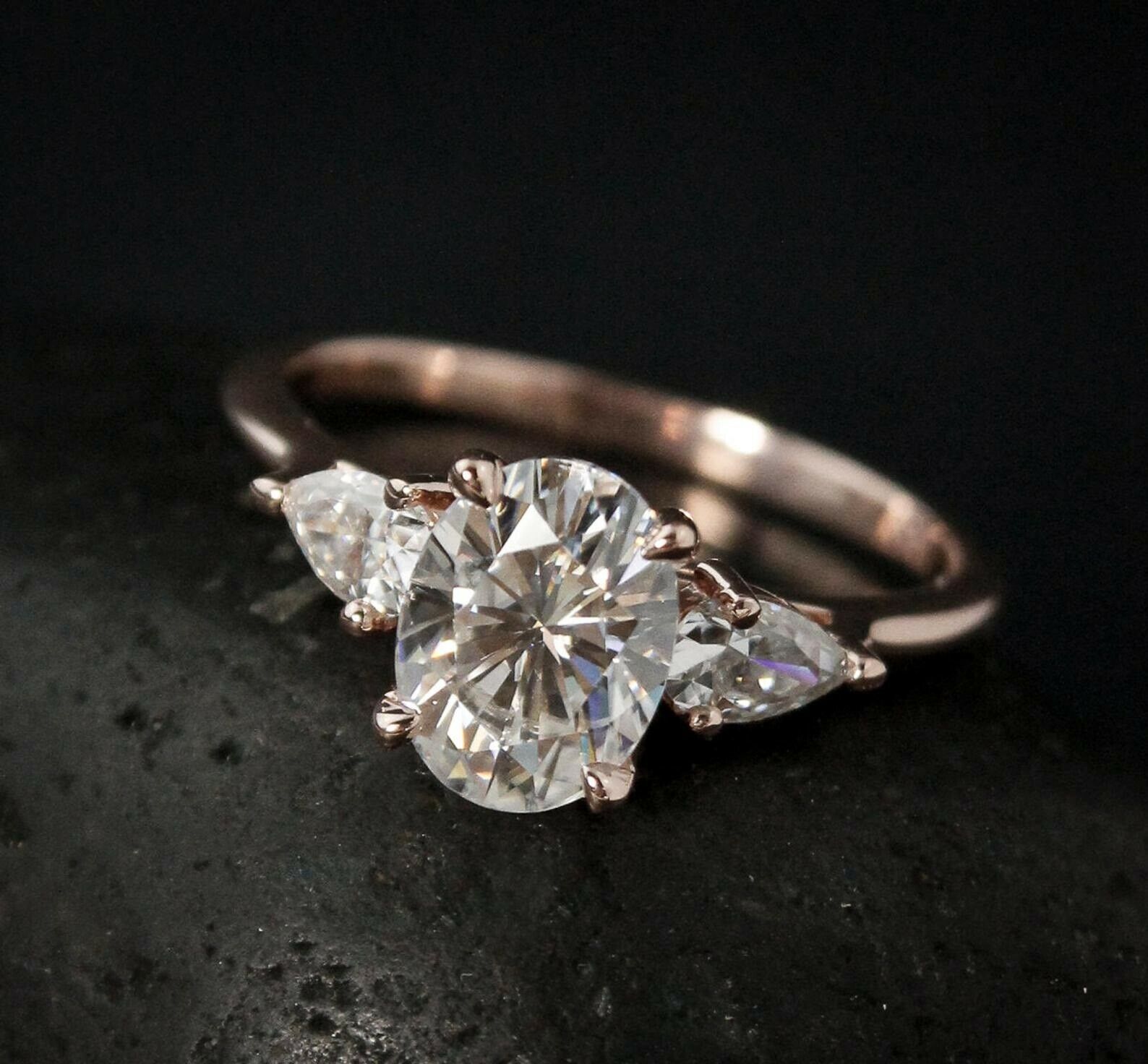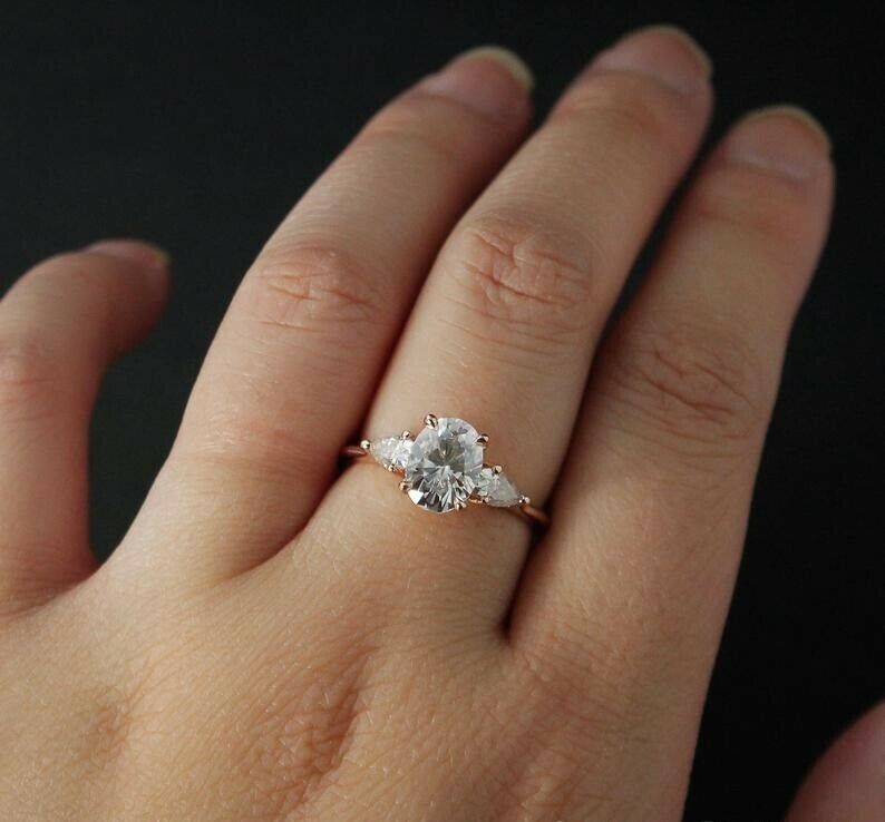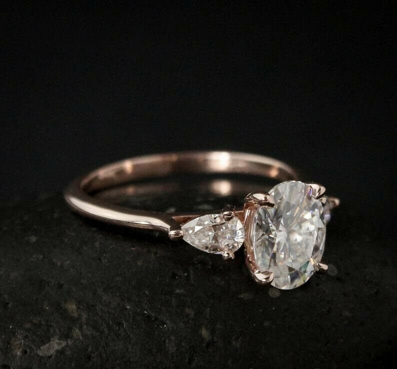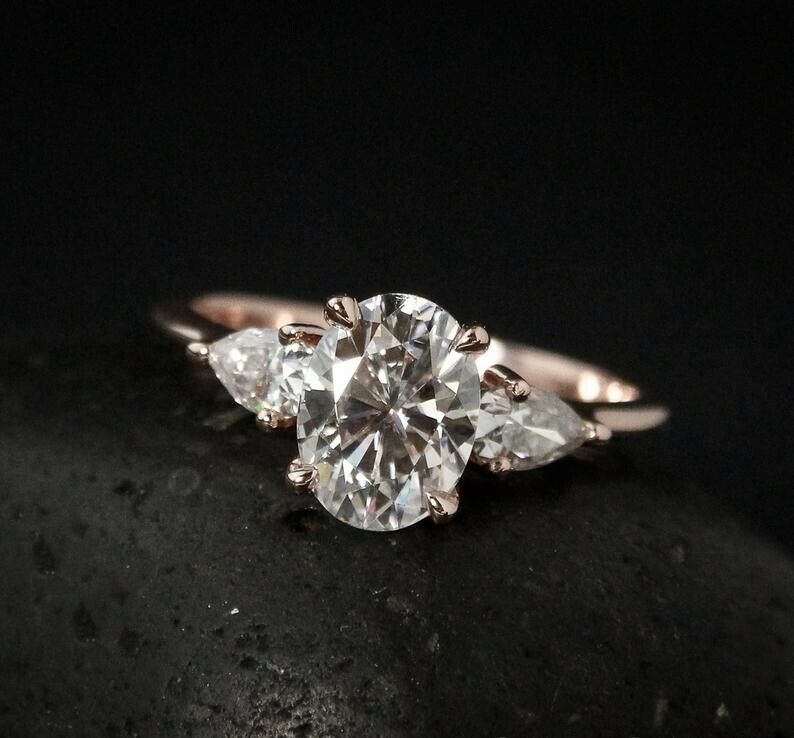 Pear Accents Trilogy Engagement Ring 2.1ct Oval Cut Diamond 14k Rose Gold Finish