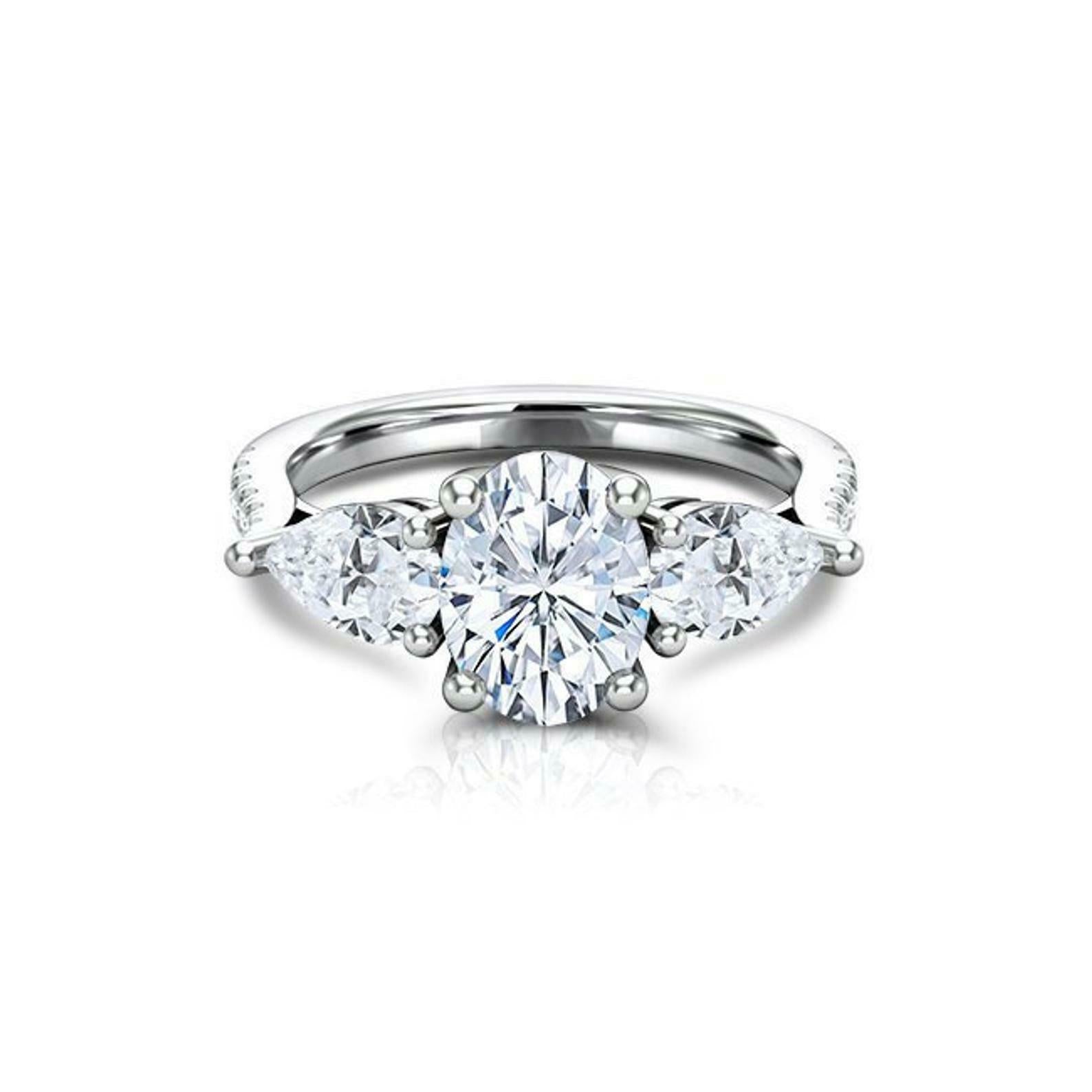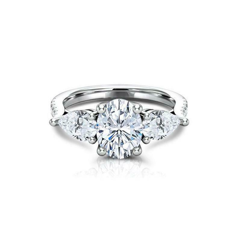 Pear Accents Trilogy Engagement Ring 2ct Oval Cut Diamond 10k White Gold Finish