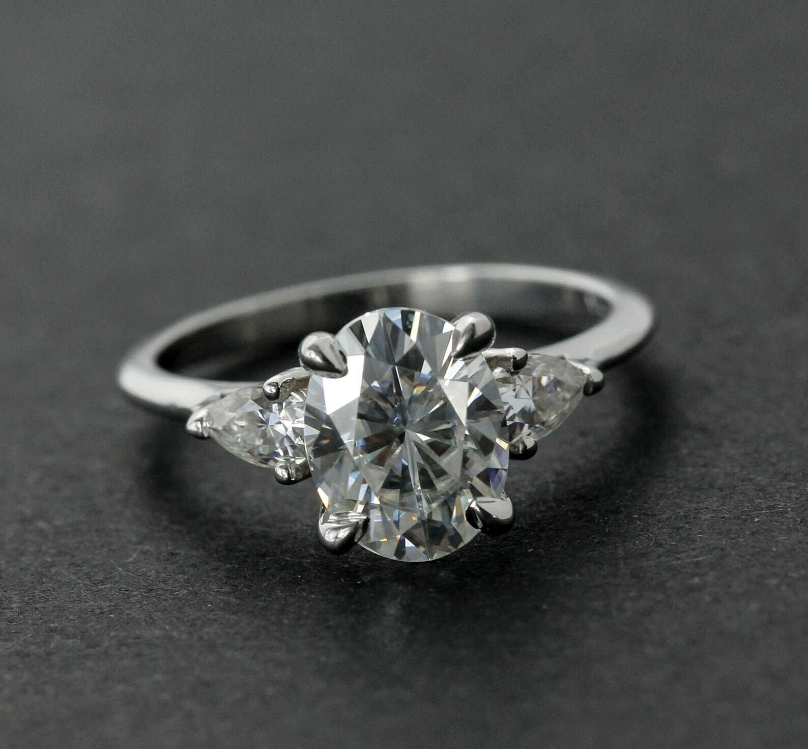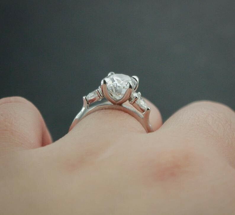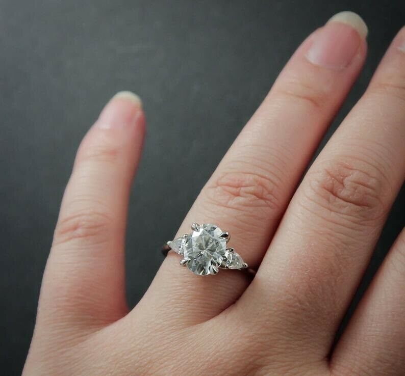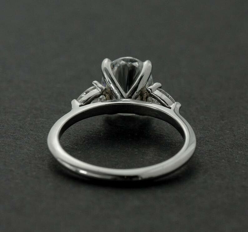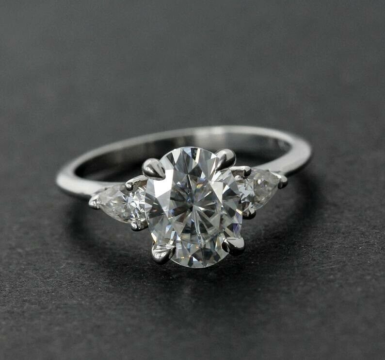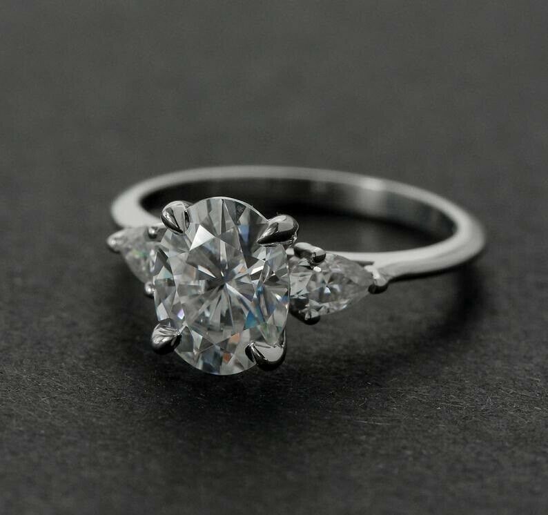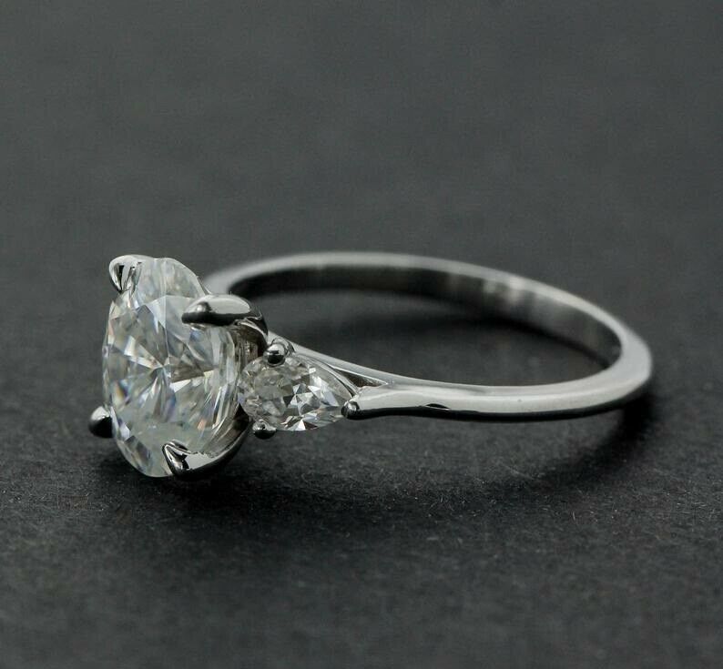 Pear Accents Trilogy Engagement Ring 2ct Oval Cut Diamond 14k White Gold Finish