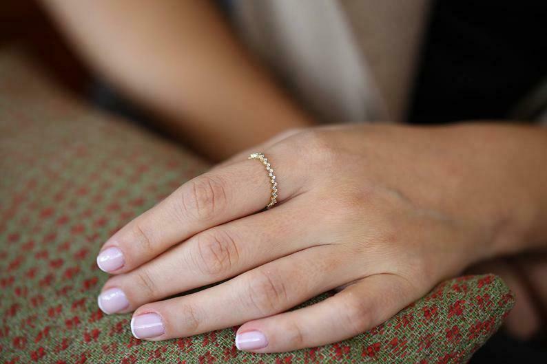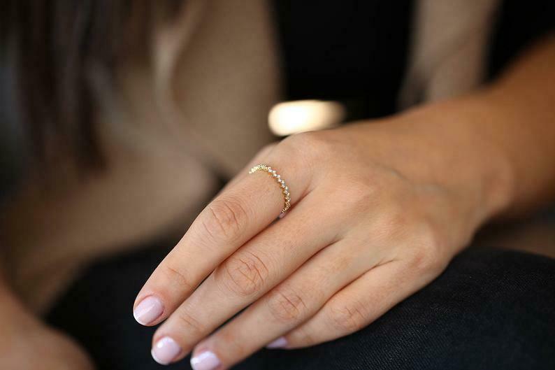 Petite Full Eternity Wedding Band 1.2ct Round Cut Diamond 14k Yellow Gold Finish