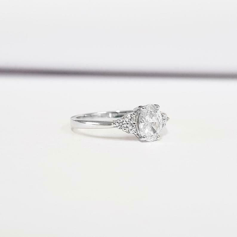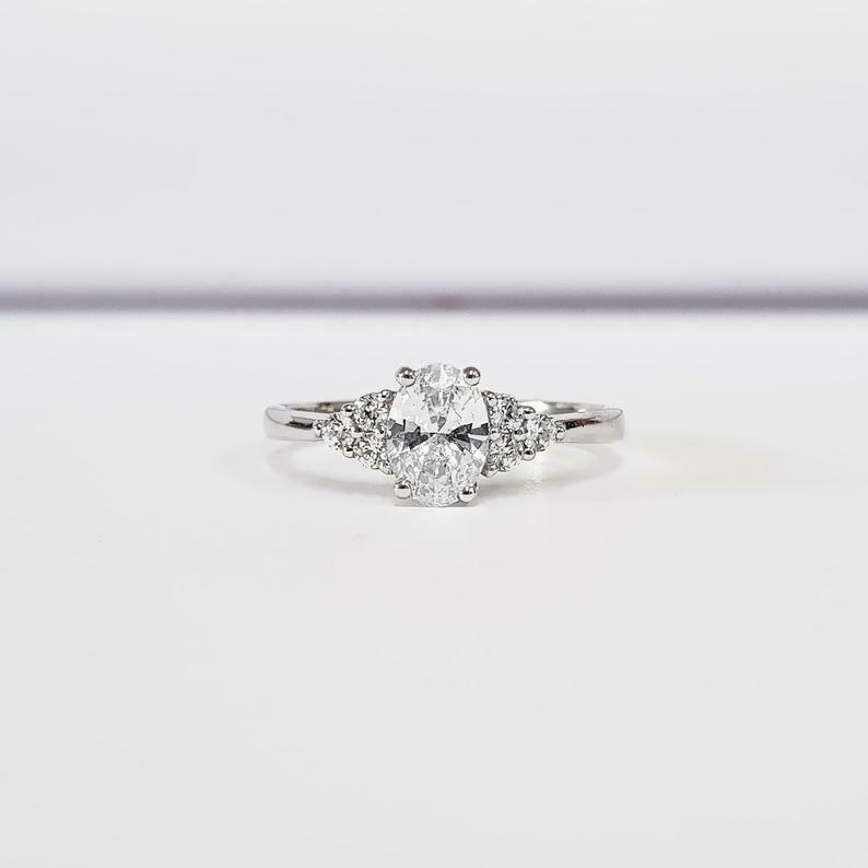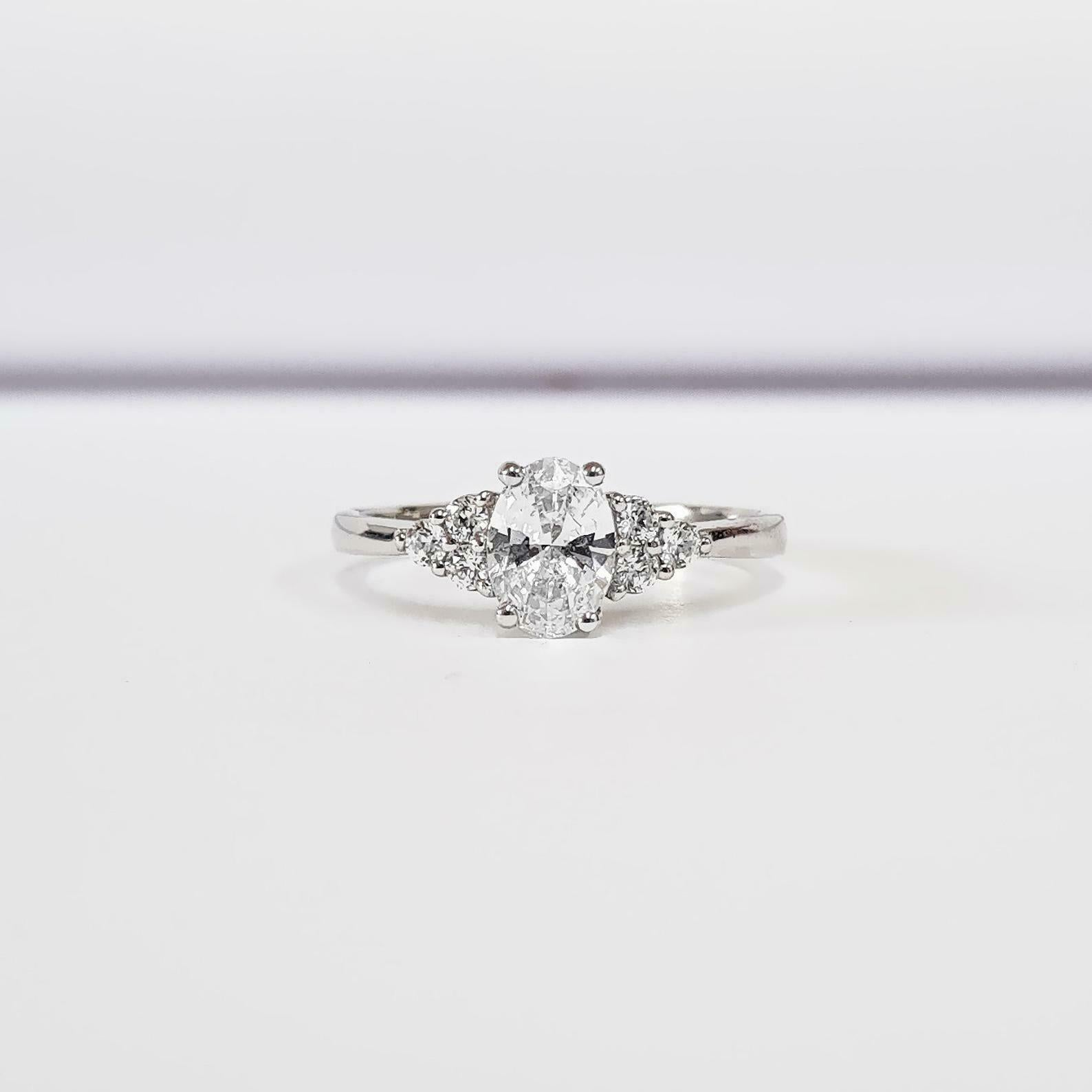 Petite Round Accents Engagement Ring 1ct Oval Cut Diamond 14k White Gold Finish