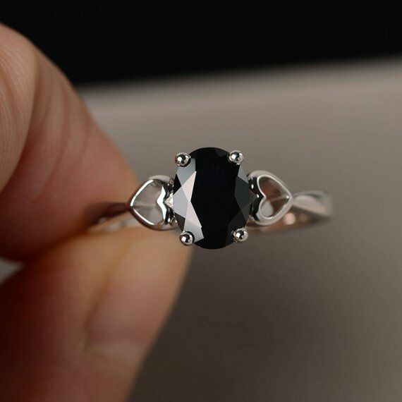 Promise Solitaire Engagement Ring 1ct Oval Cut Black Diamond 14k White Gold Over