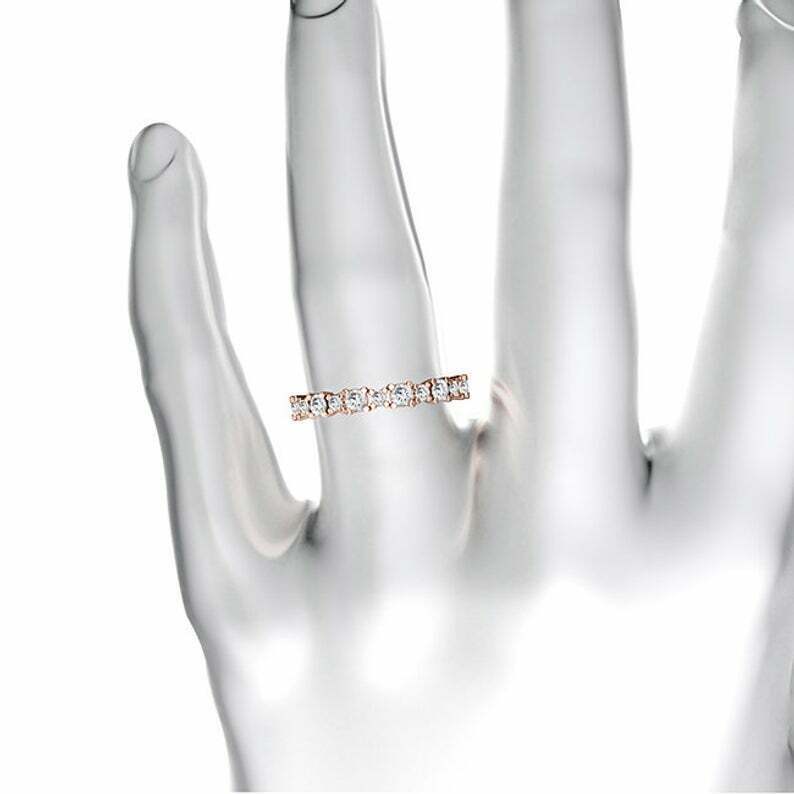 Prong Set Half Eternity Wedding Band 0.5ct Round Cut Diamond 14k Rose Gold Finish