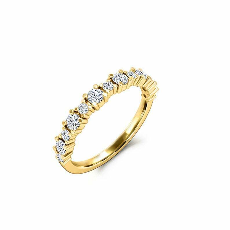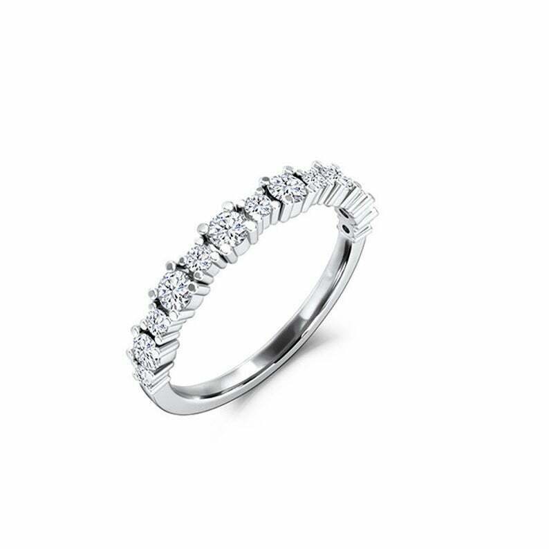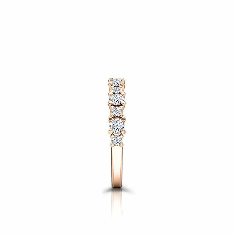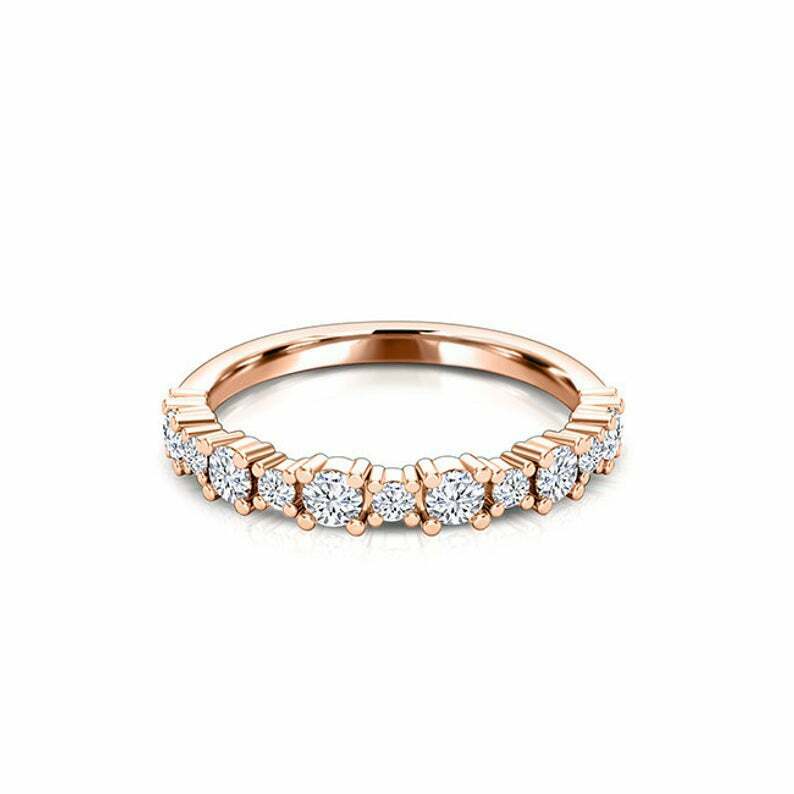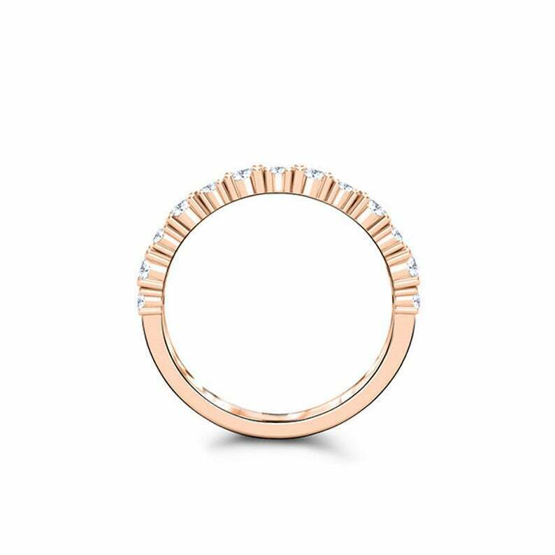 Prong Set Half Eternity Wedding Band 0.5ct Round Cut Diamond 14k RoseGold Finish