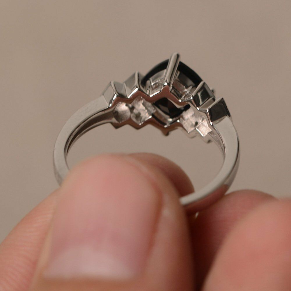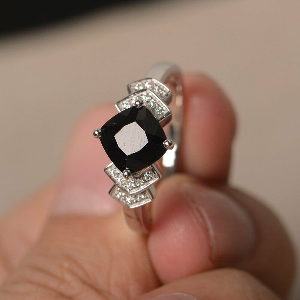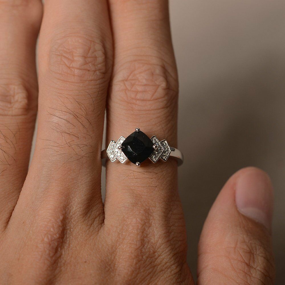 Proposal Engagement Ring 2ct Cushion Cut Black Diamond 14k White Gold Finish