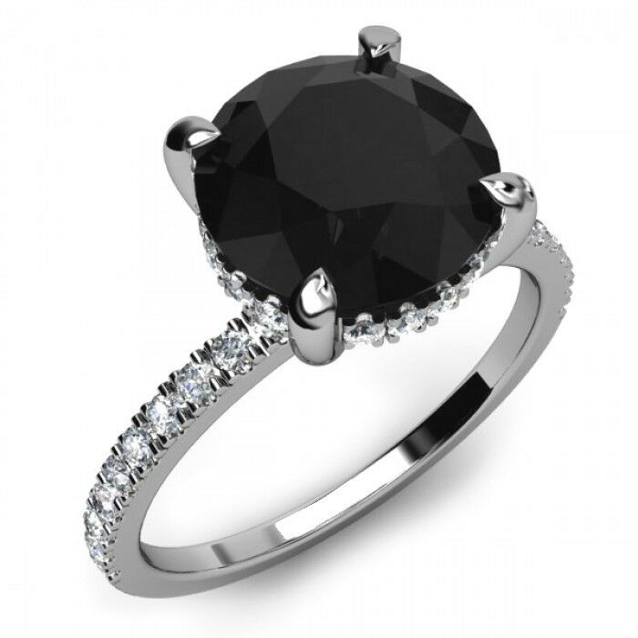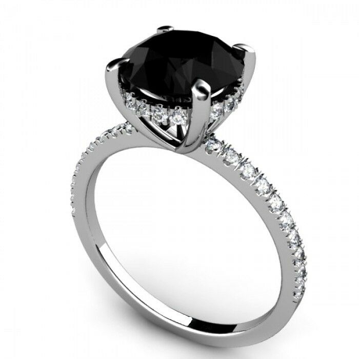 Real 10k White Gold 1.4ct Black Diamond Round Cut Anniversary Engagement Ring