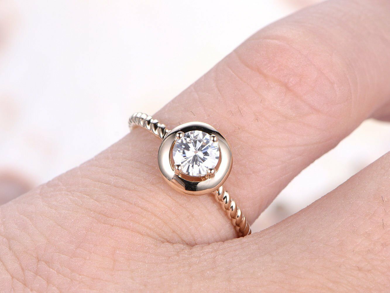 Rope Design Engagement Ring 0.5ct Round Cut VVS1D Diamond 14k Rose Gold Finish