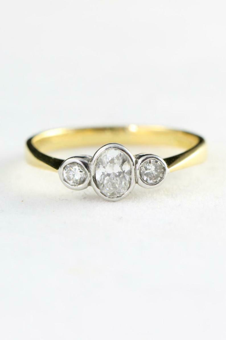 Round Accent Trilogy Engagement Ring 0.85ct Oval Cut Diamond 14k Two Tone Finish