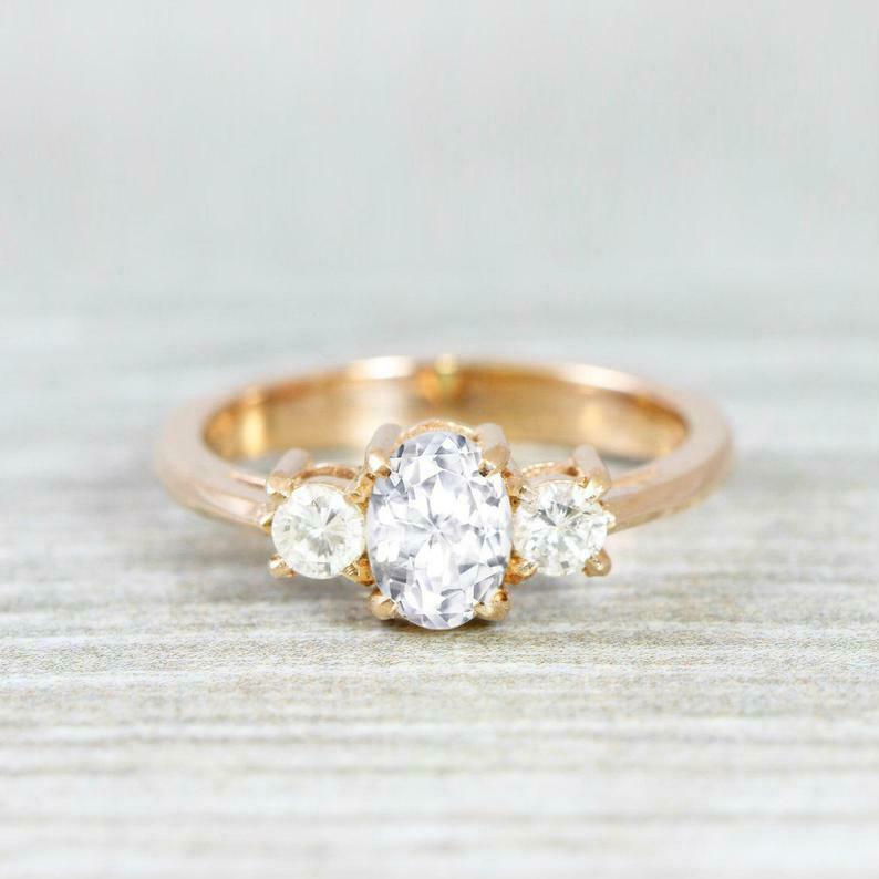 Round Accents Trilogy Engagement Ring 1ct Oval Cut Diamond 14k Yellow Gold Finish