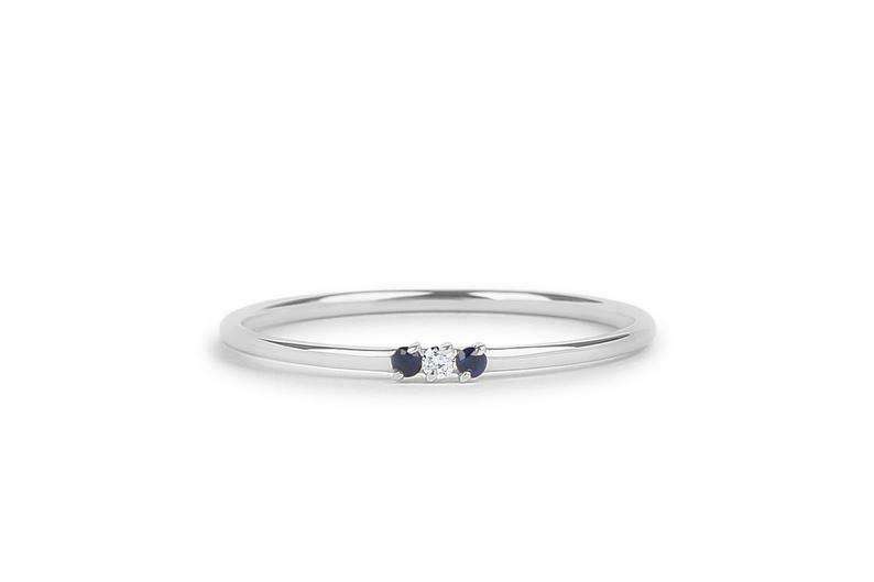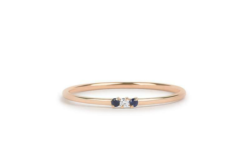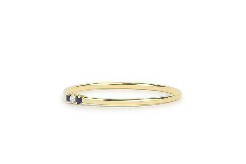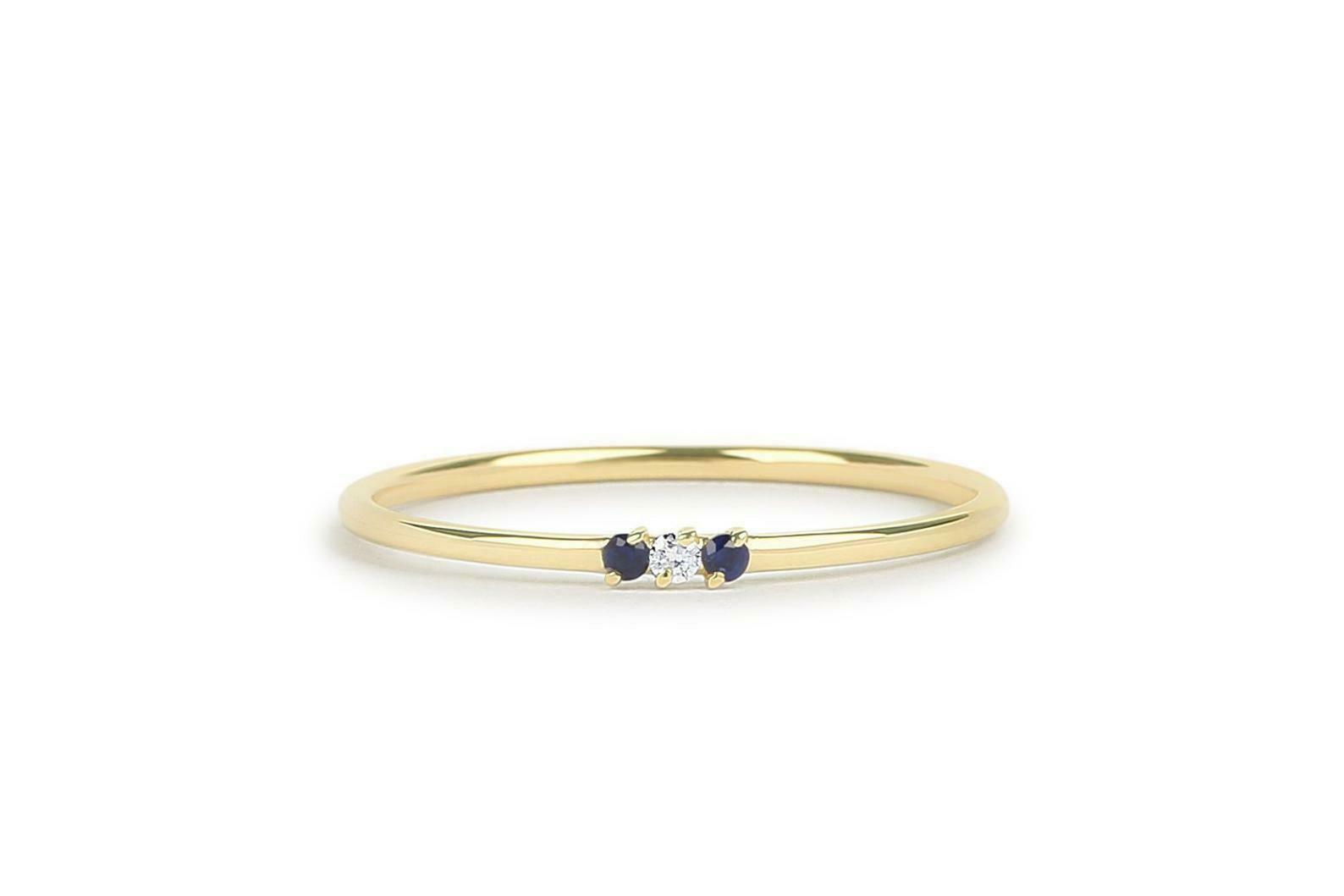 Sapphire Trilogy Minimalist Ring 0.2ct Round Cut Diamond 14k Yellow Gold Finish