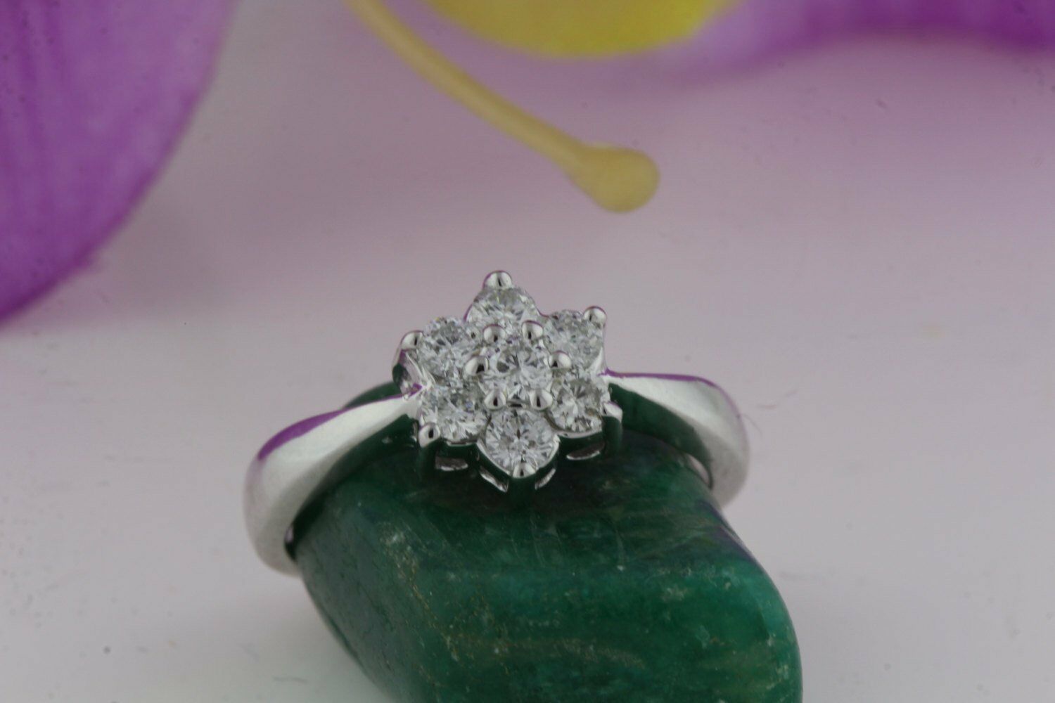 Small Cluster Flower Engagement Ring 0.5ct Round Cut Diamond 14k White Gold Over