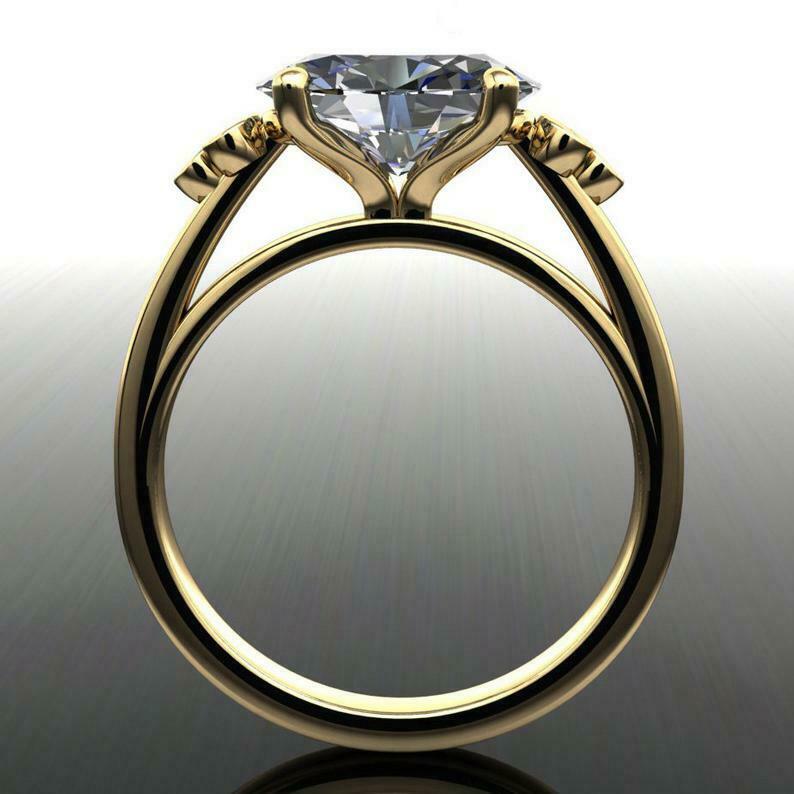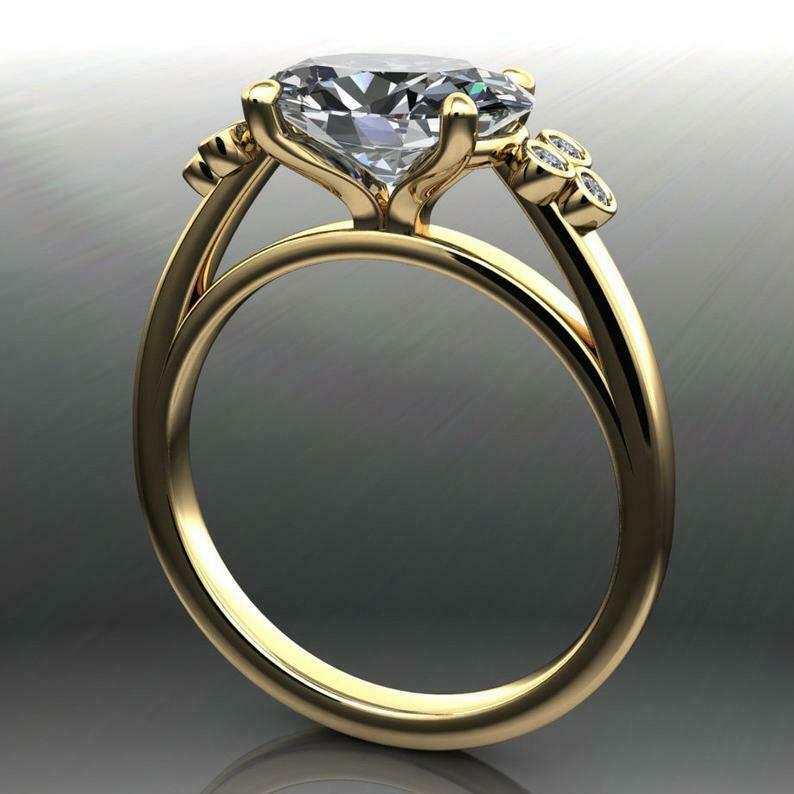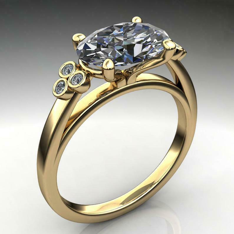 Solitaire Bezel Set Round Accents Ring 2ct Oval Cut Diamond 14k Yellow Gold Over