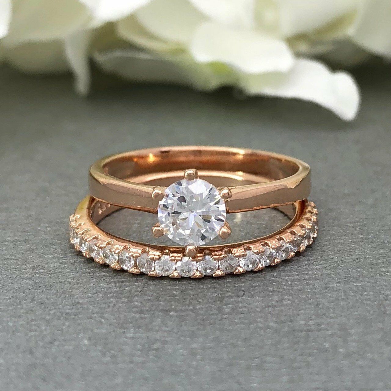 Solitaire Bridal Set Engagement Ring 2ct Round Cut Diamond 14k Rose Gold Finish