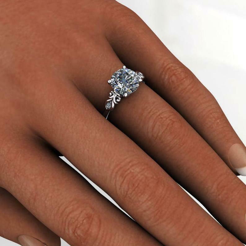 Solitaire Leaf Accent Engagement Ring 2ct Round Cut Diamond 14k WhiteGold Finish