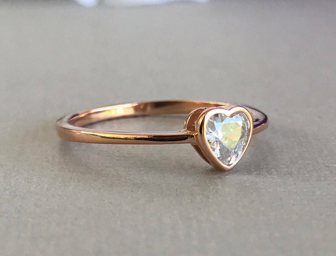 Solitaire Promise Engagement Ring 0.2ct Heart Cut Diamond 14k Rose Gold Finish