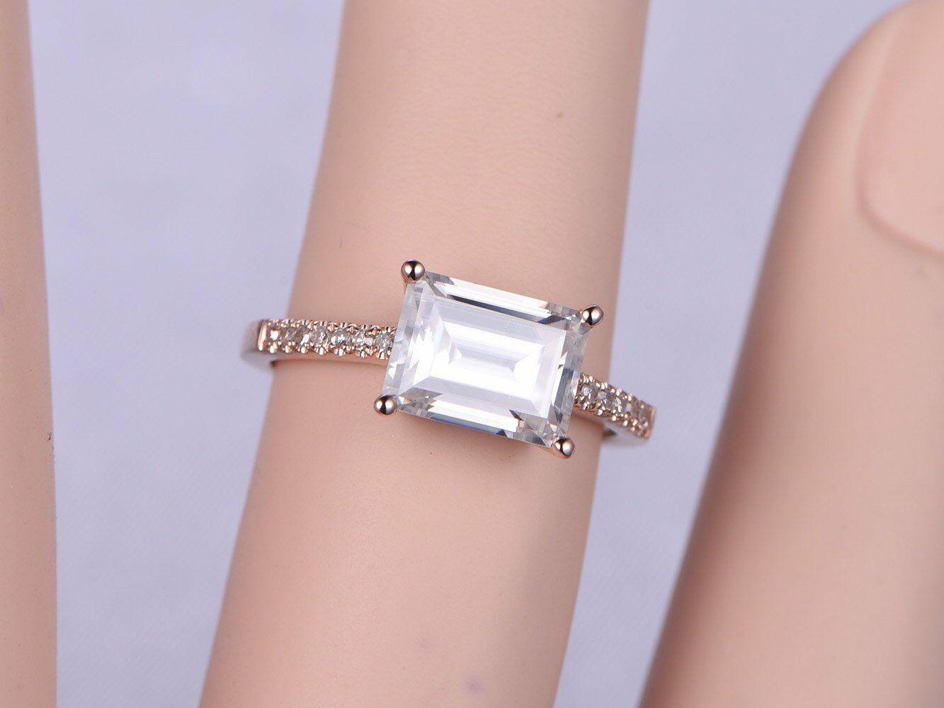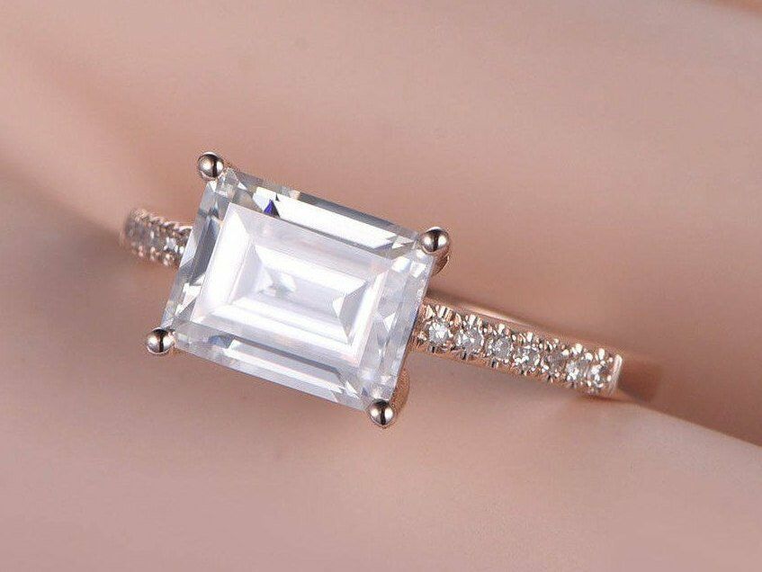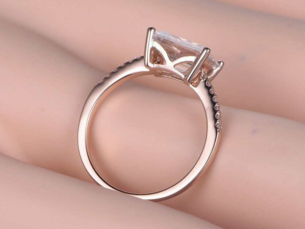 Solitaire Promise Engagement Ring 1ct Emerald Cut Diamond 14k Rose Gold Finish