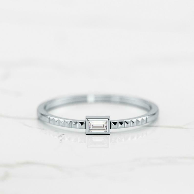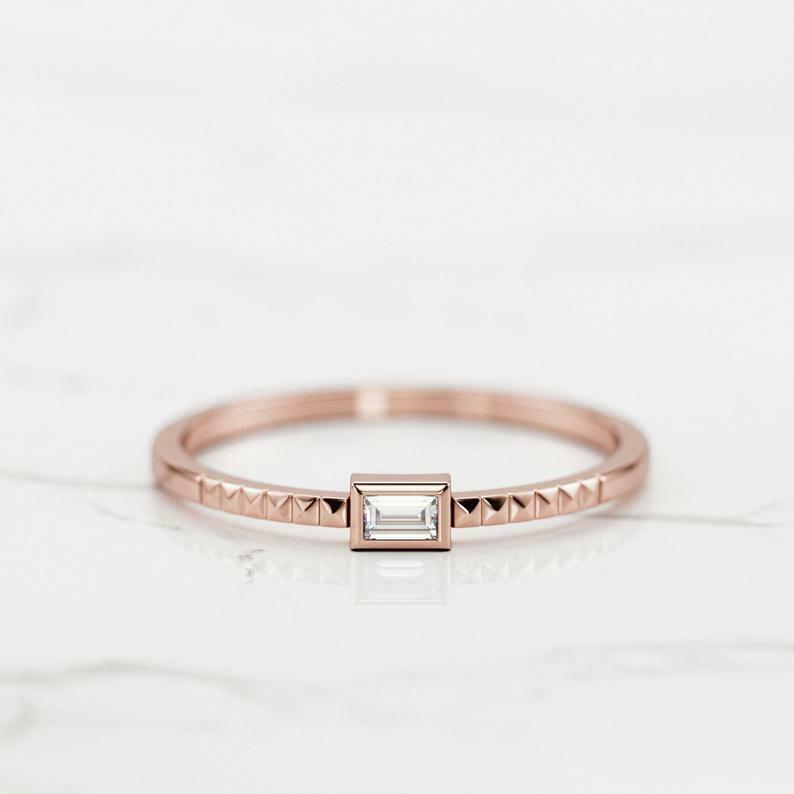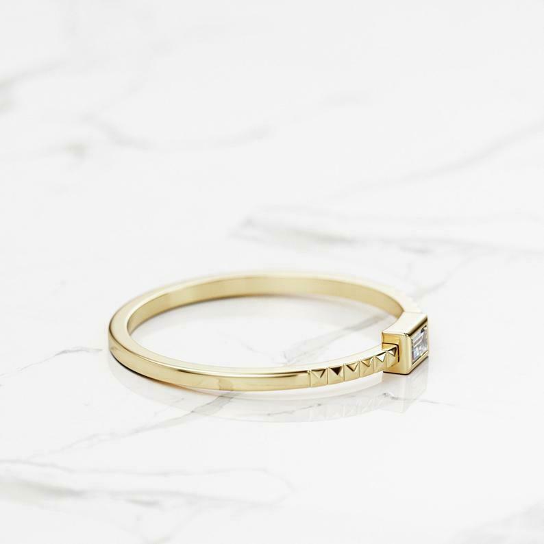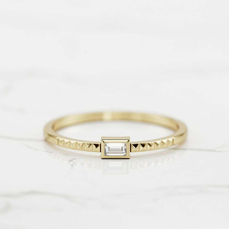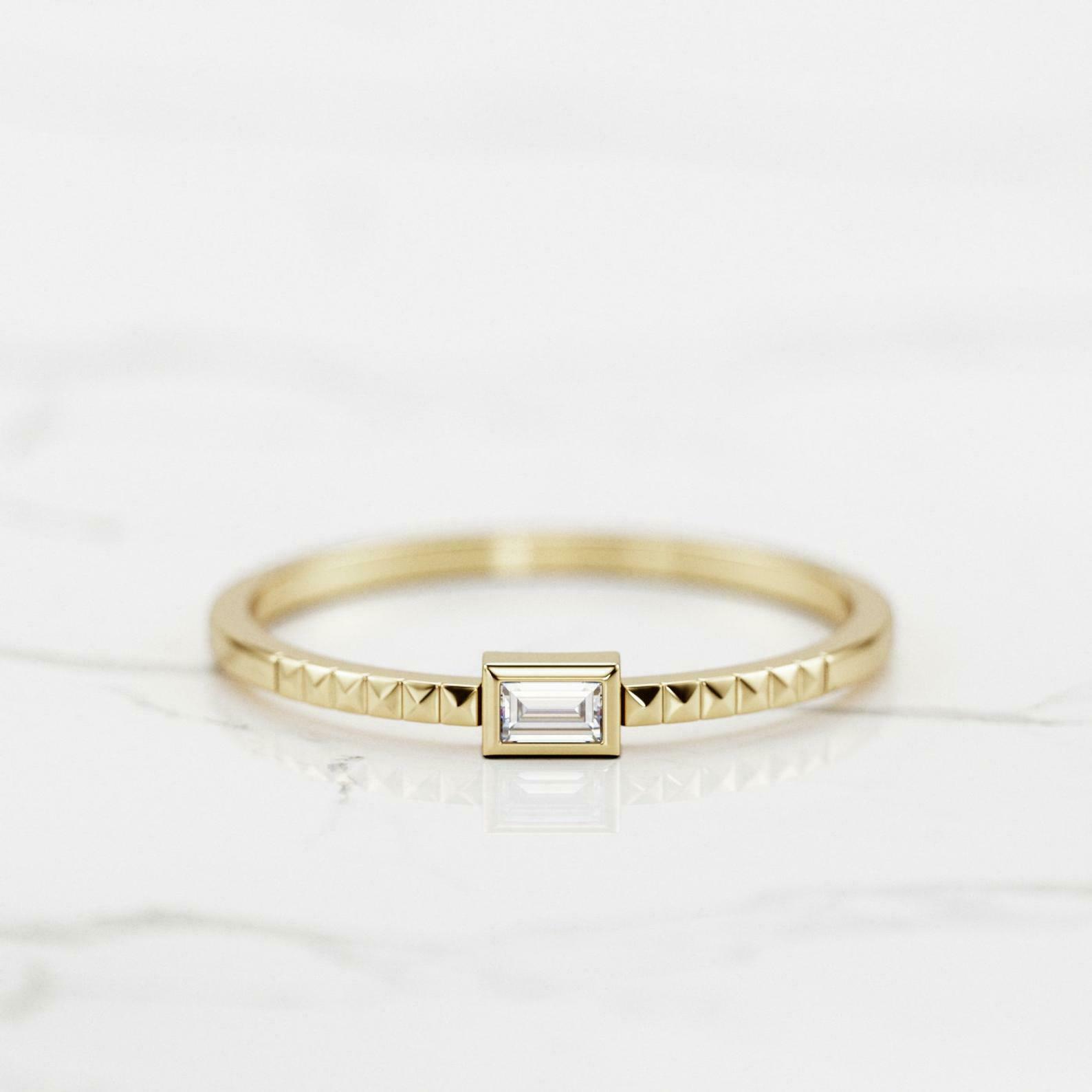 Solitaire Pyramid Design Ring 0.3ct Baguette Cut Diamond 14k Yellow Gold Finish