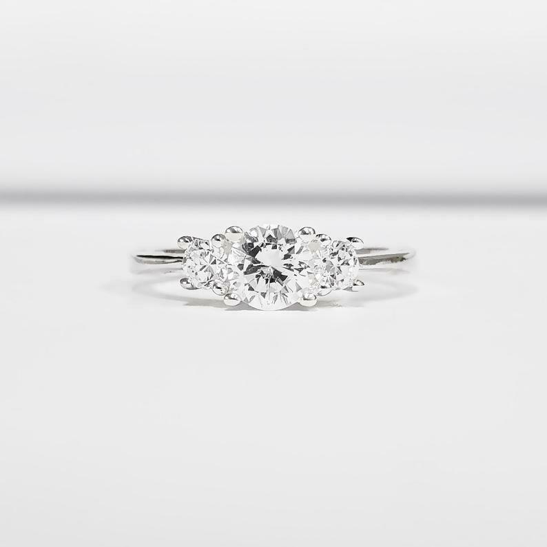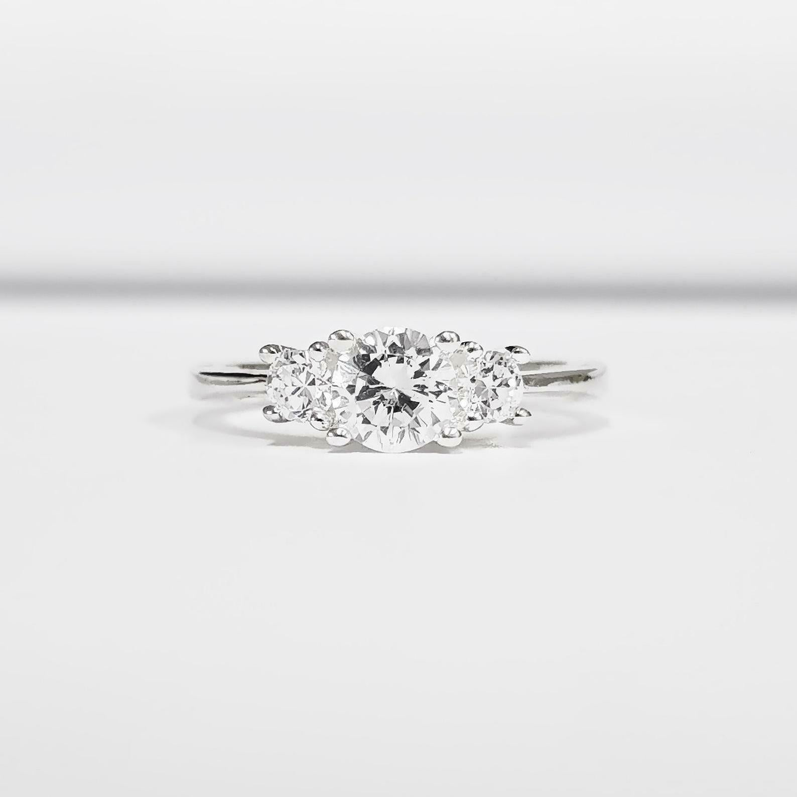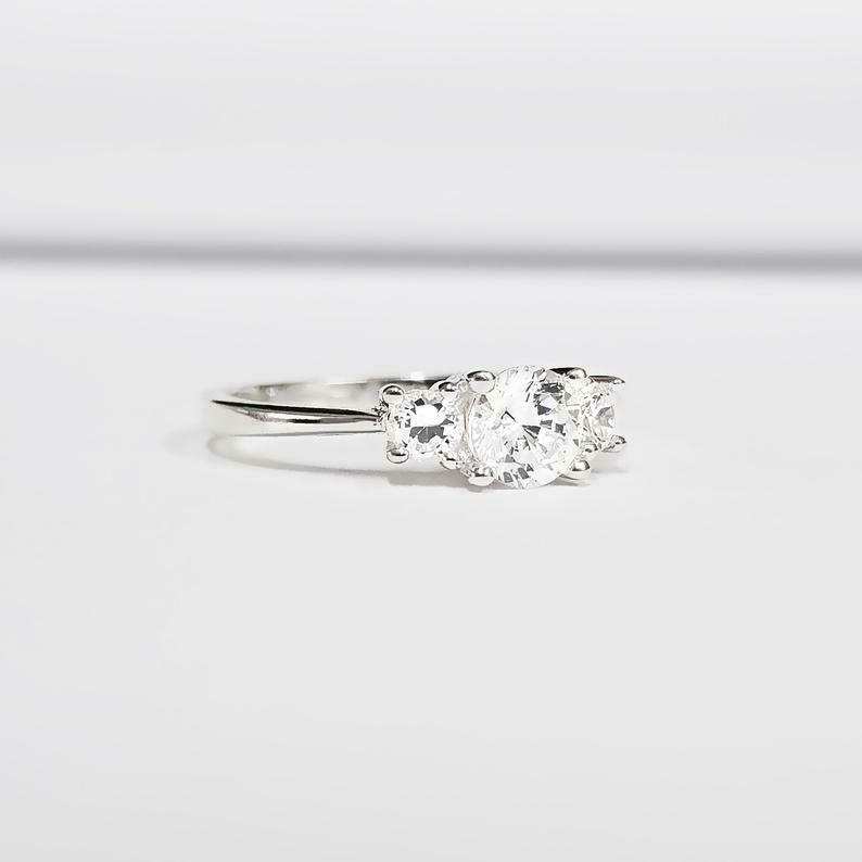 Solitaire Trilogy Engagement Ring 0.7ct Round Cut Diamond 14k White Gold Finish