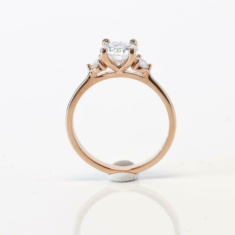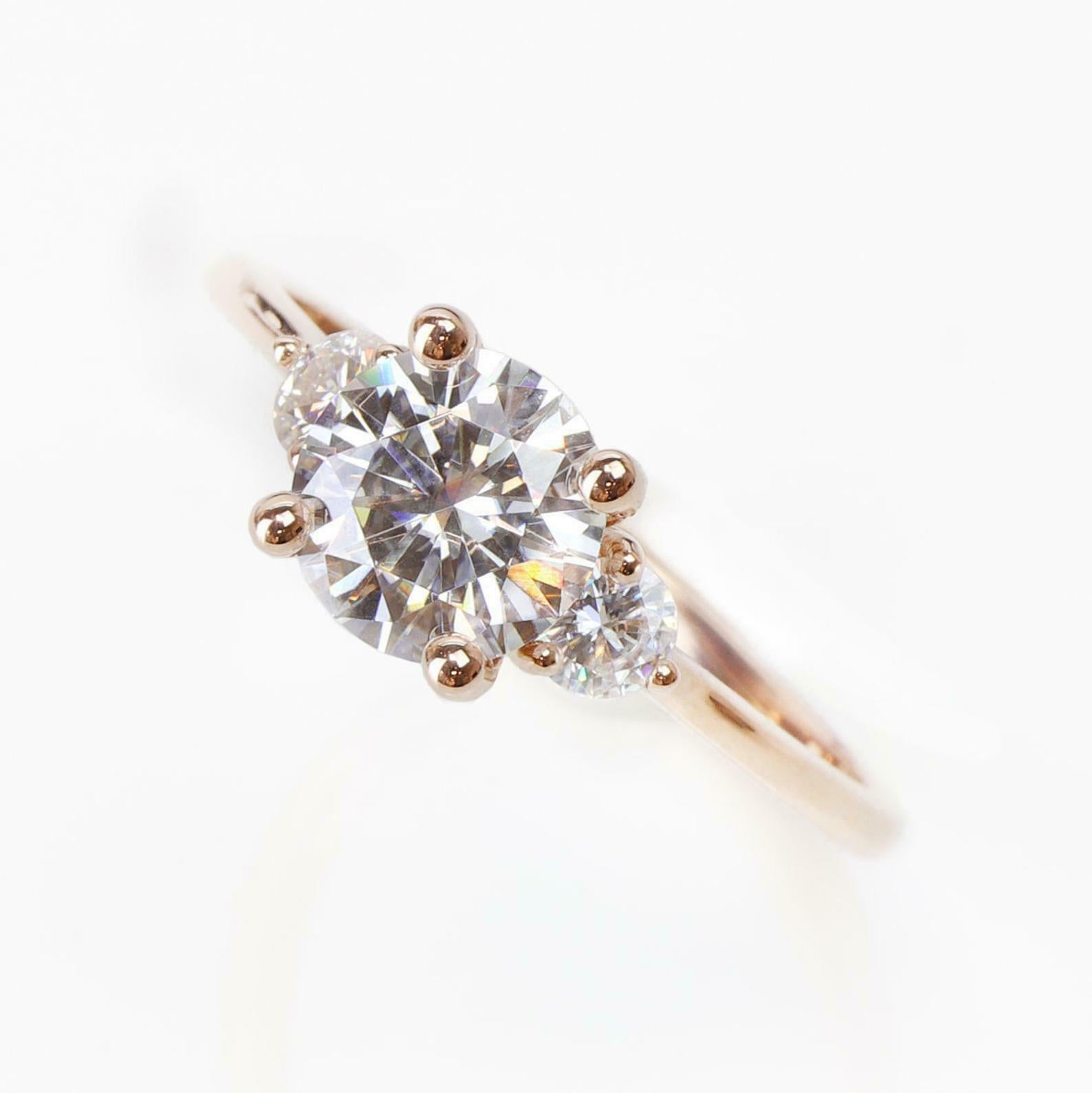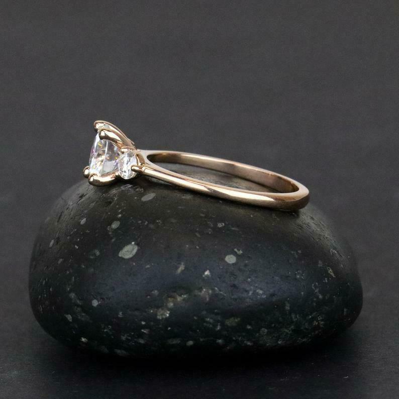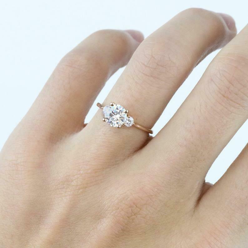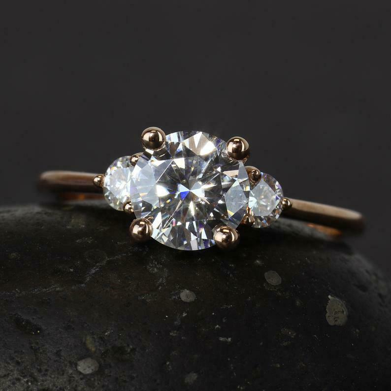 Solitaire Trilogy Engagement Ring 1.7ct Round Cut Diamond 14k Rose Gold Finish