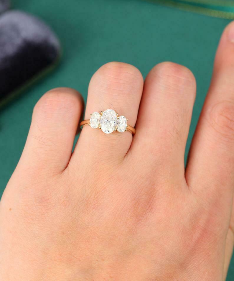 Solitaire Trilogy Engagement Ring 2ct Oval Cut Diamond 14k Yellow Gold Finish
