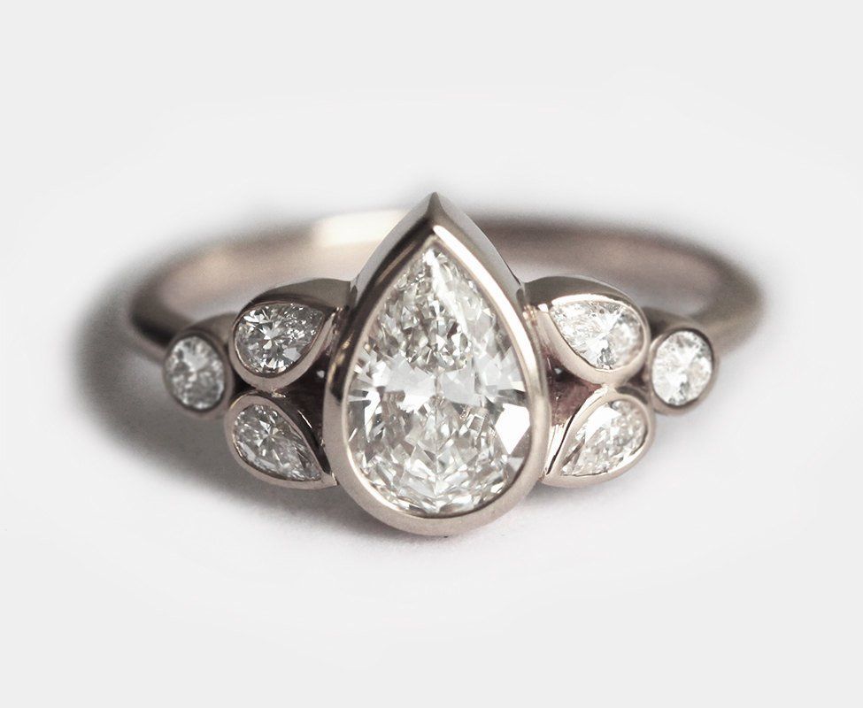 Solitaire with Accent Engagement Ring 1ct Pear Cut Diamond 14k White Gold Finish