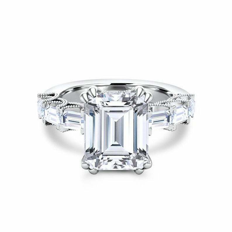 Solitaire with Accent Milgrain Ring 2ct Emerald Cut Diamond 14k WhiteGold Finish