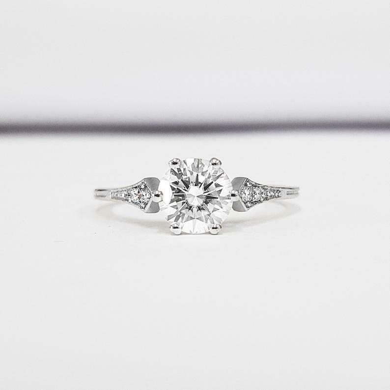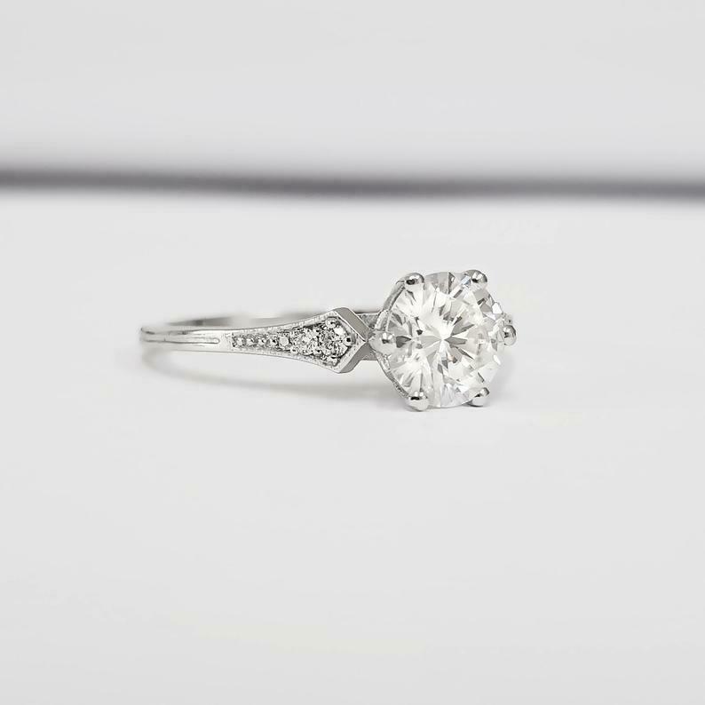 Solitaire with Accents Engagement Ring 0.75ct Round Diamond 14k White Gold Over