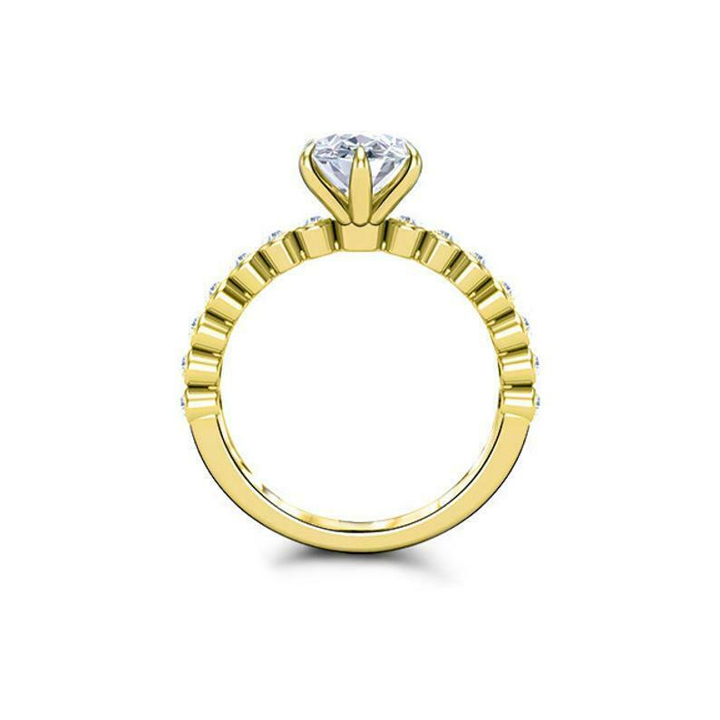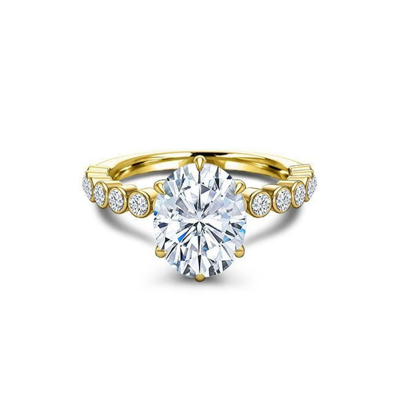 Solitaire with Round Accents Ring 2.25ct Oval Cut Diamond 14k Yellow Gold Finish