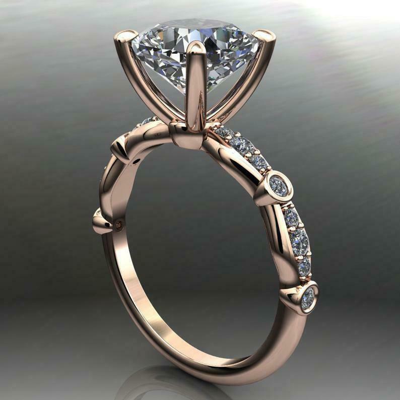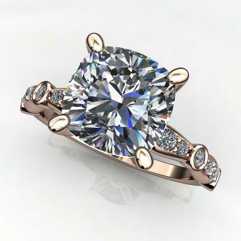 Solitaire with Round Accents Ring 2.5ct Cushion Cut Diamond 14k Rose Gold Finish